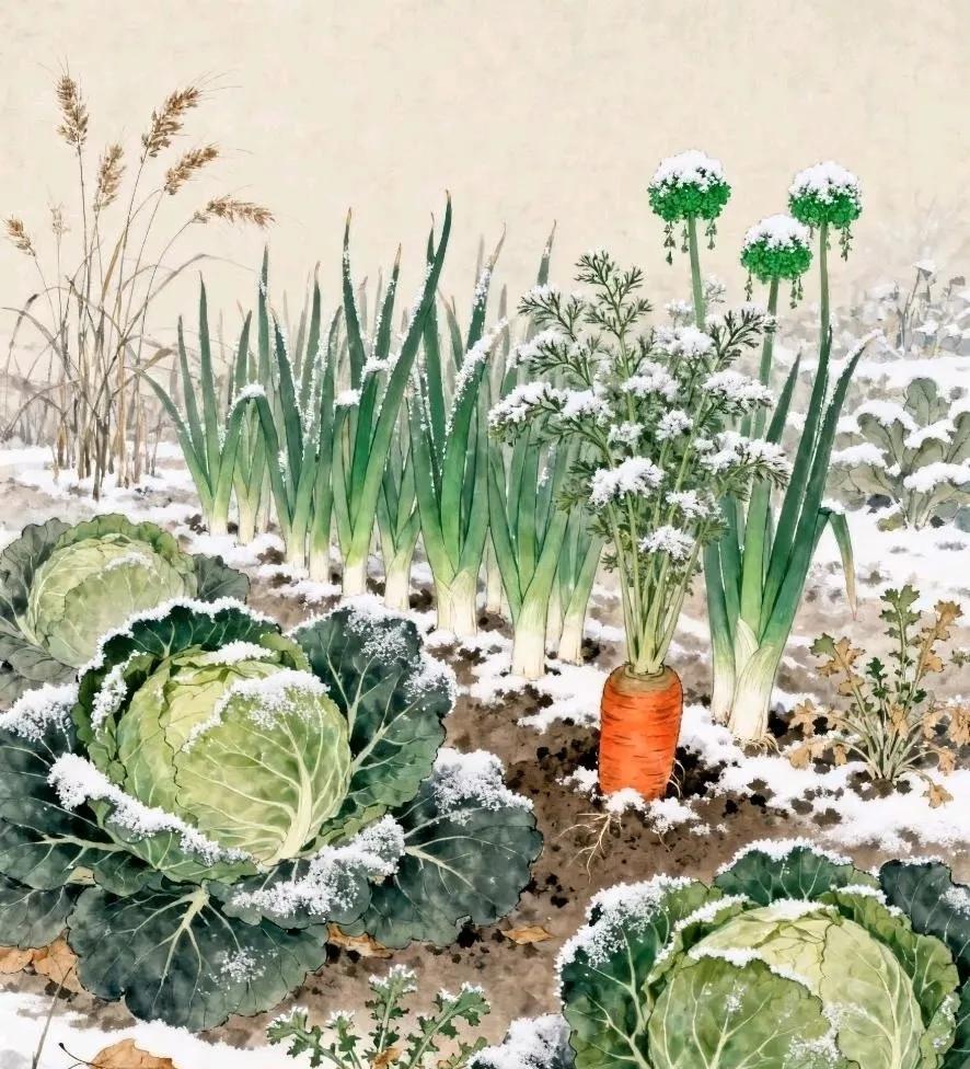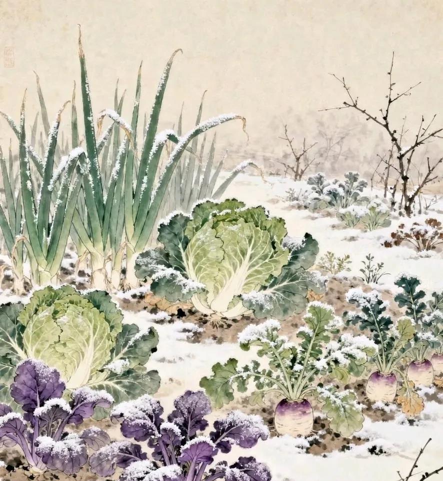 冬天清晨的菜园子~ Al绘画#我的菜园子 #从菜园到餐桌 #中国人爱种菜 #农村的冬天 #种菜要有种菜的样子 #我的小菜地 #田园生活 #农村菜园子 #冬天的早晨 #中国人骨子里的种菜基因