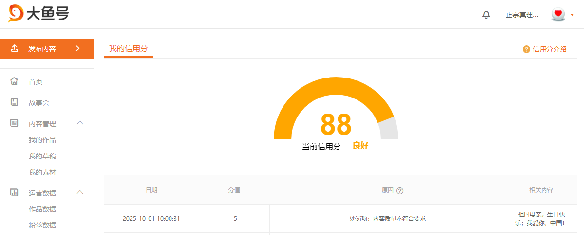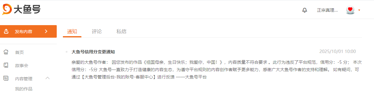 宣布永久退出“大鱼号”,祝祖国生日快乐被处罚