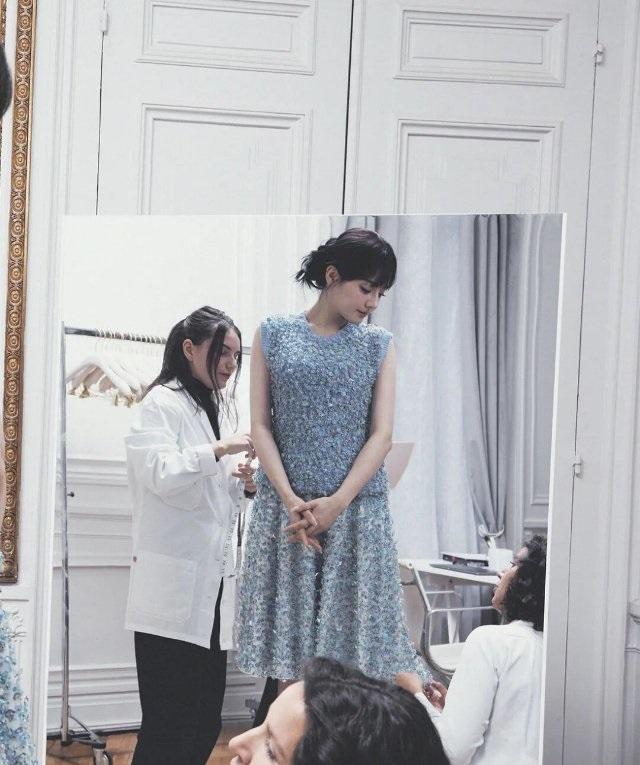 今天迪丽热巴在试装的时候搭配的好漂亮,看起来像个迷人的美少女。 迪丽热巴上身穿蓝色的坎肩,下身搭配浅蓝色花裙,凸显出了满满的飘逸之美。 她脚踩米色的尖头高跟鞋,增添了俏丽之美,也很时尚。 迪丽热巴的身段是越来越苗条了,整个人显得俏丽又窈窕,气质超好。 她这次特意把头发挽了起来,还画着精致的妆容,看上去真的是很有吸引力。她确实是越变越漂亮了。