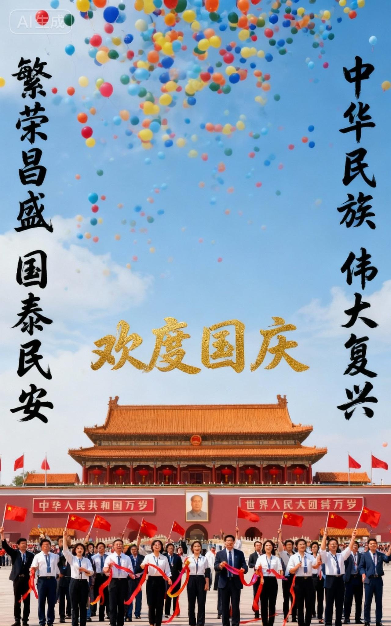 用AI设计了一幅欢度国庆的图。祝福祖国,繁荣昌盛,国泰民安。还可以吧!#AI创新设计#