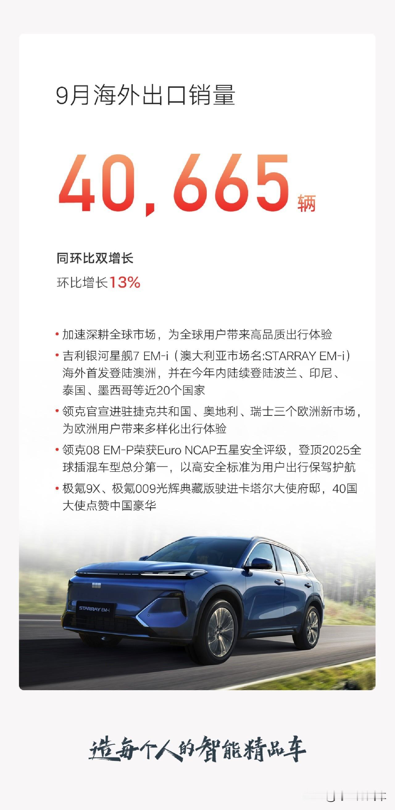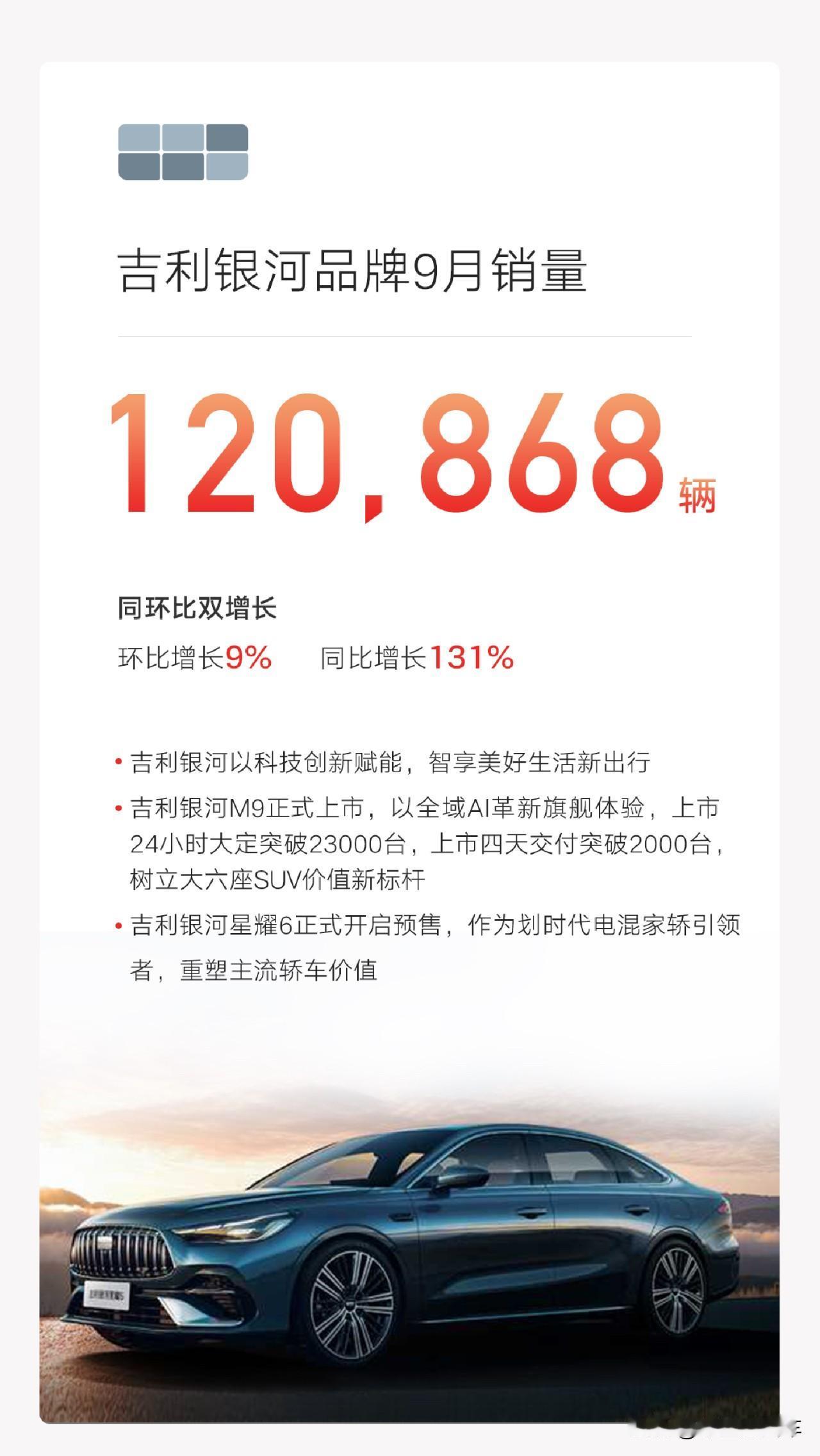总销量、新能源销量再创历史新高!吉利汽车9月销量超27万辆 吉利这是要超过迪子的节奏啊![我想静静]