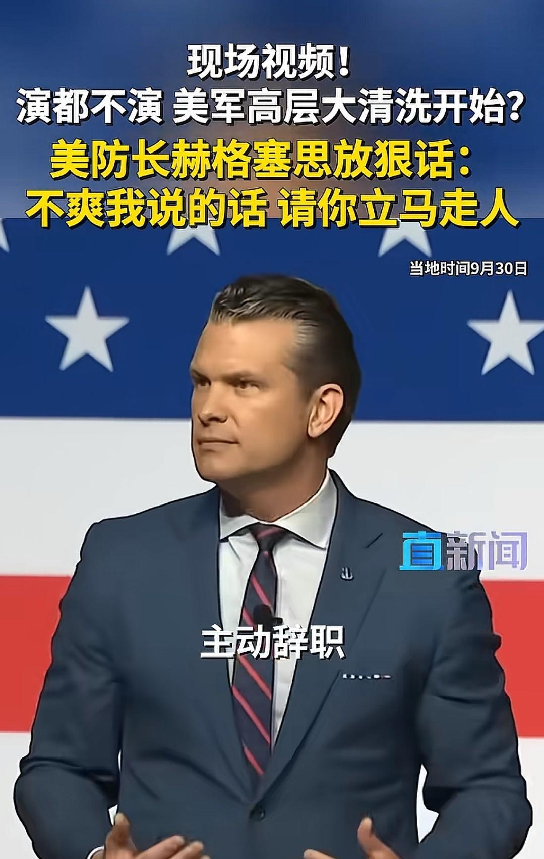 美国的将军大会。 一个只有国民卫队少校经历退役的战争部长在台上,大言不惭的训斥800多位各军种身经百战的将军。 不听话就走人。[灵光一闪] 太有意思了。