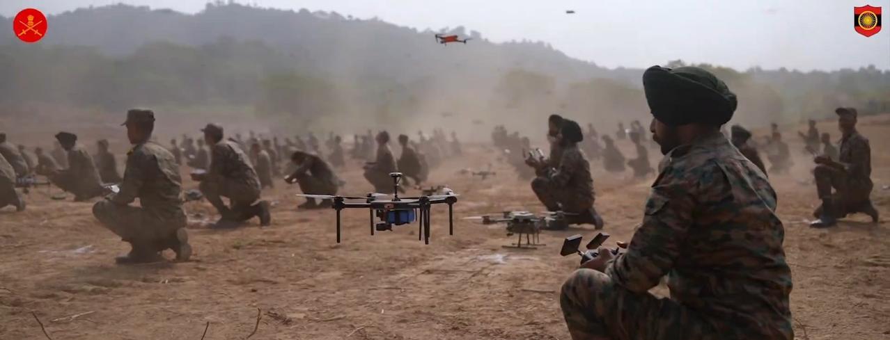 原来,印度的蜂群无人机,是靠“人群”来控制的! 日前印度军队展示了新型无人机作战