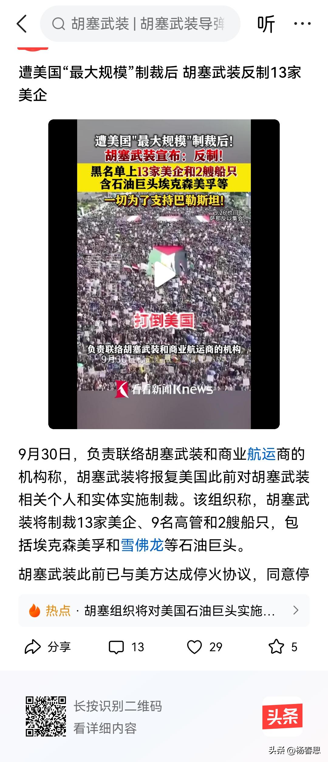 胡塞组织对美国13家公司提出制裁,有人说穷鬼制裁富人可笑。 他们小看胡塞武装了