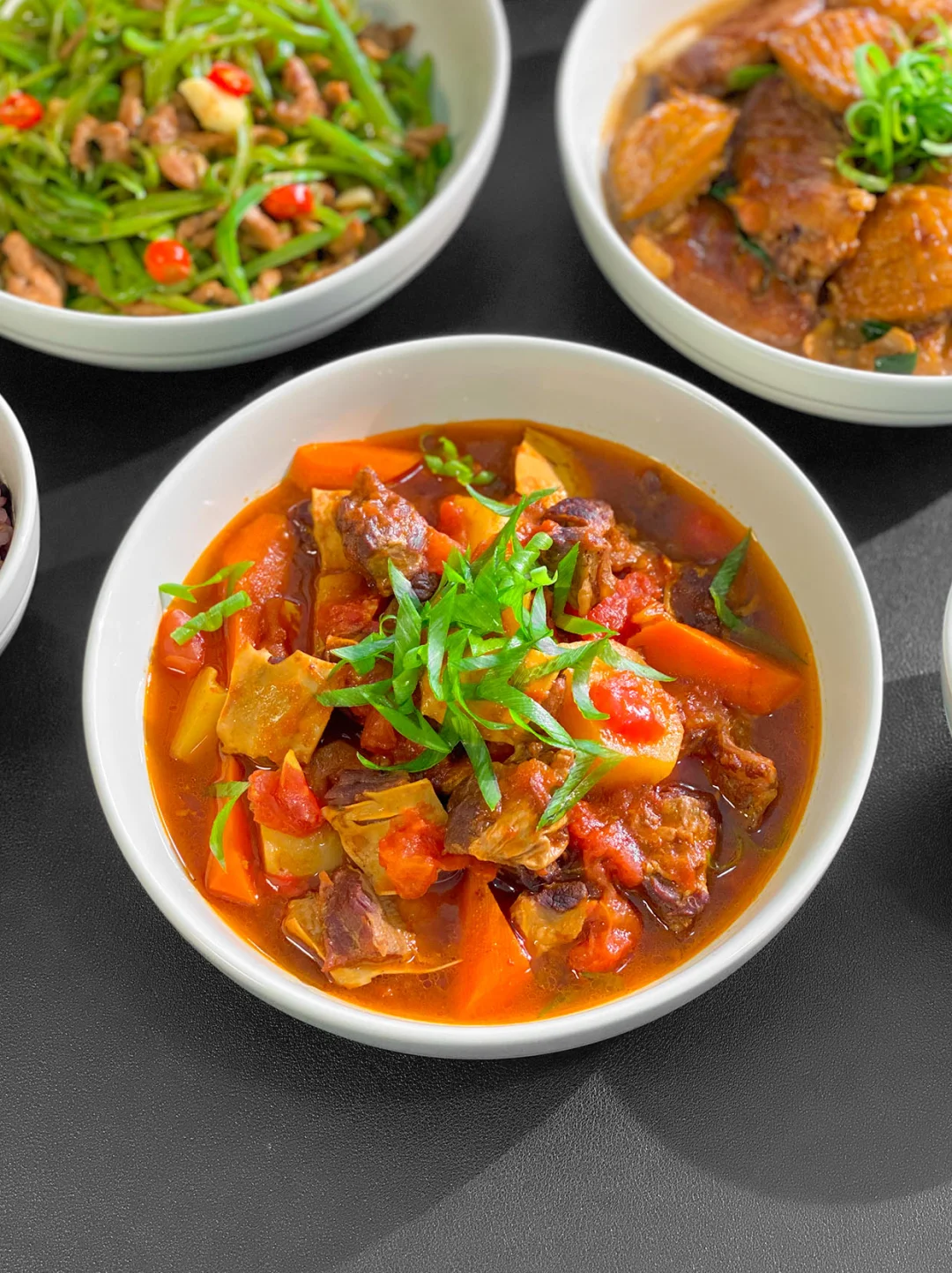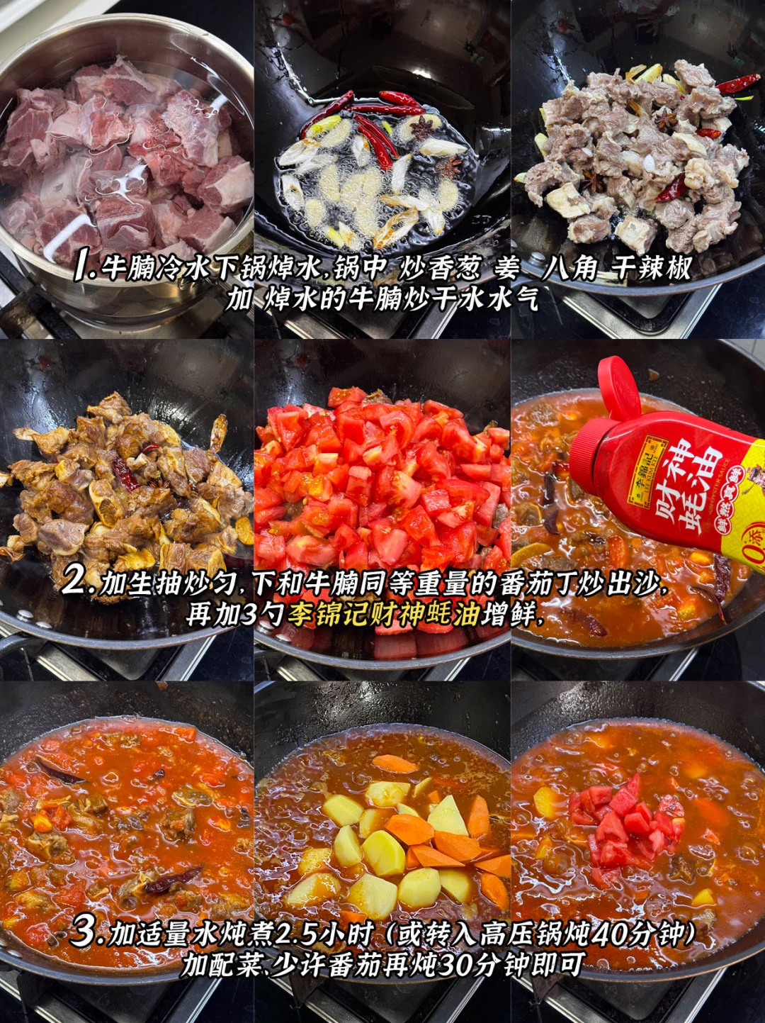 🌟番茄炖牛腩:牛腩炖到筷子一戳就软烂,🍅吸饱汤汁的牛肉裹着浓郁茄汁,拌米饭超香!有了李锦记财神蚝油的鲜味加持,这道菜想做翻车都难,👍这款蚝油配料表干净,0%添加防腐剂,用它做出来的菜,小朋友也可以放心吃!