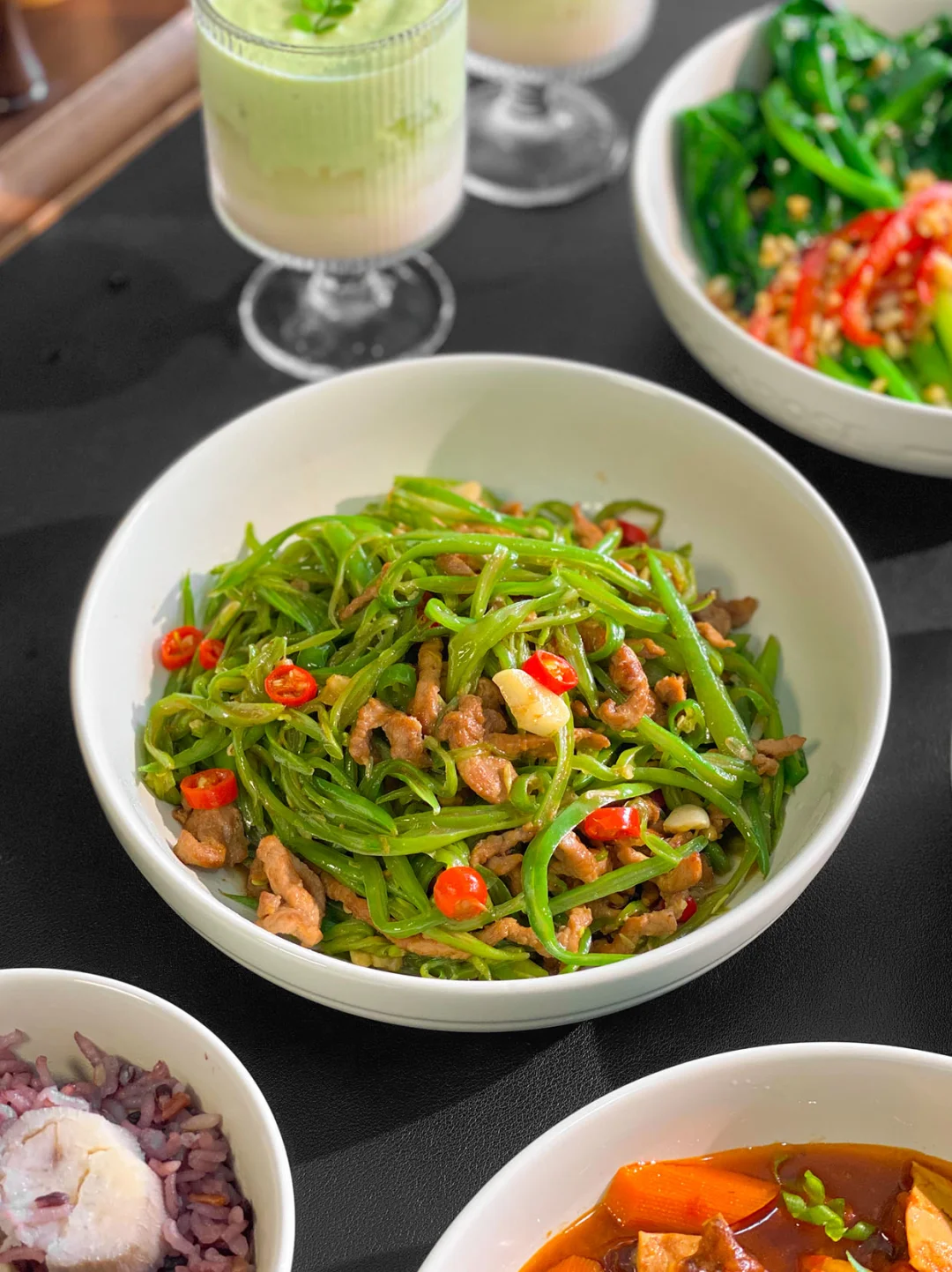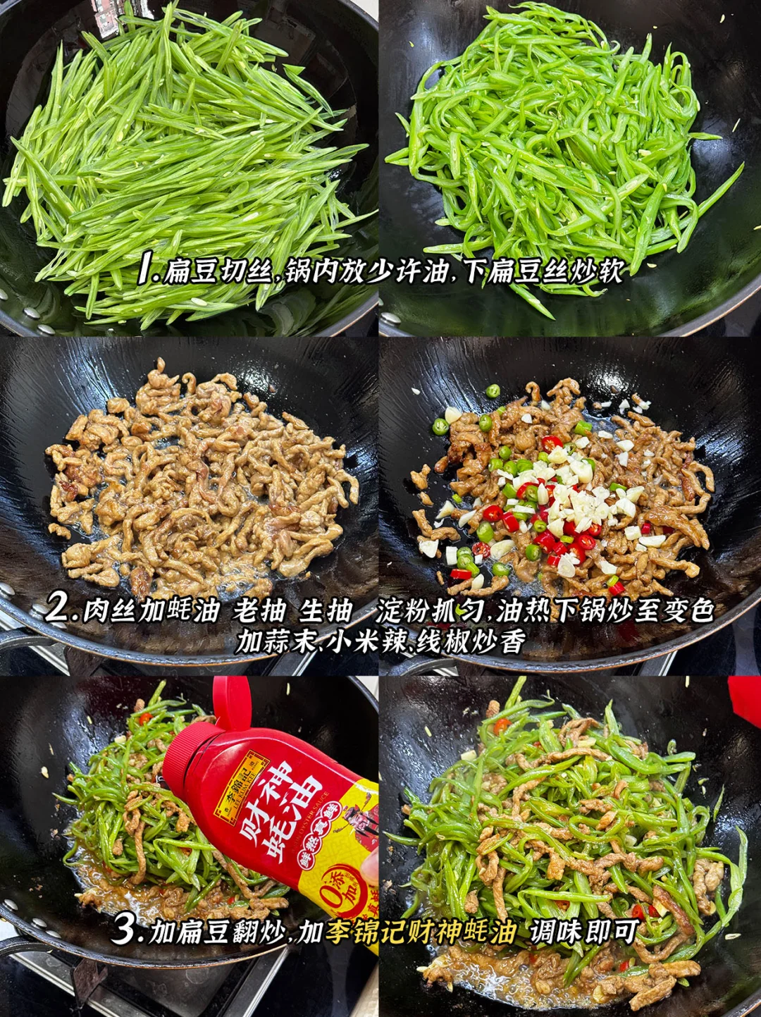 🌟扁豆炒肉丝:妥妥的下饭神器,满满家的味道!肉丝用蚝油腌过再炒,不仅去腥,还让肉嫩而不柴,和脆嫩扁豆搭配,一口下去超满足~