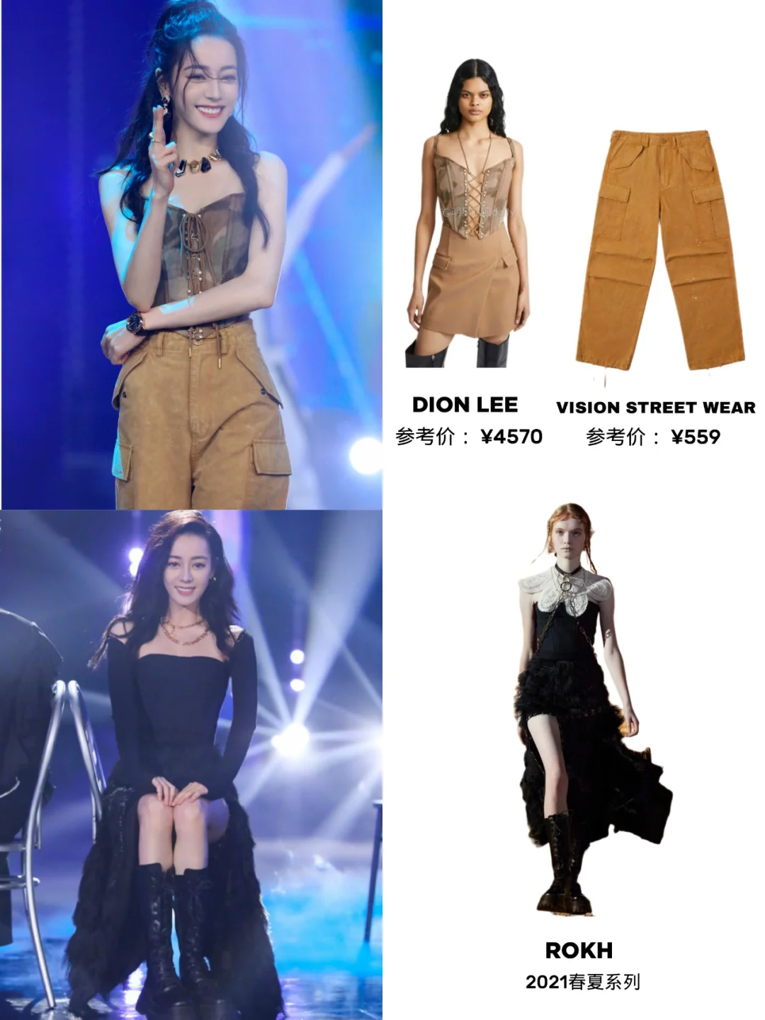 迪丽热巴快本两组造型 又美又酷两组不同风格 LOOK 1 上衣: Dion Lee 裤子: Vision Street Wear . LOOK 2 连衣裙: ROKH 2021 迪丽热巴同款| 迪丽热巴私服|