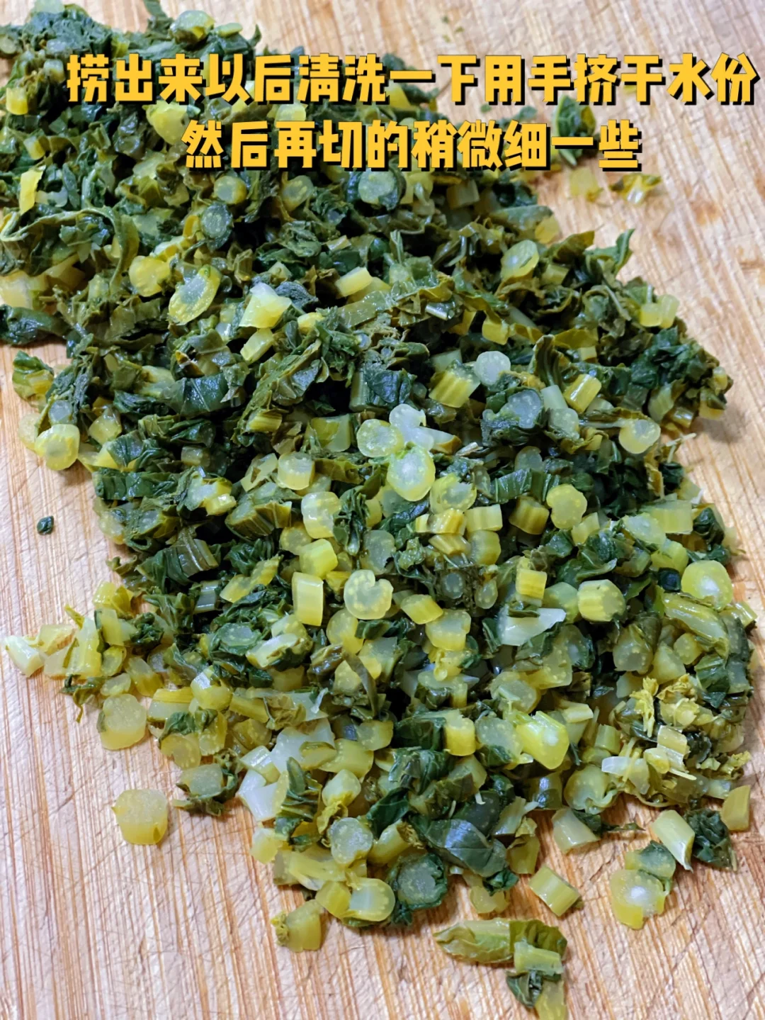 6. 捞出来以后清洗一下用手挤干水份然后再切的稍微细一些