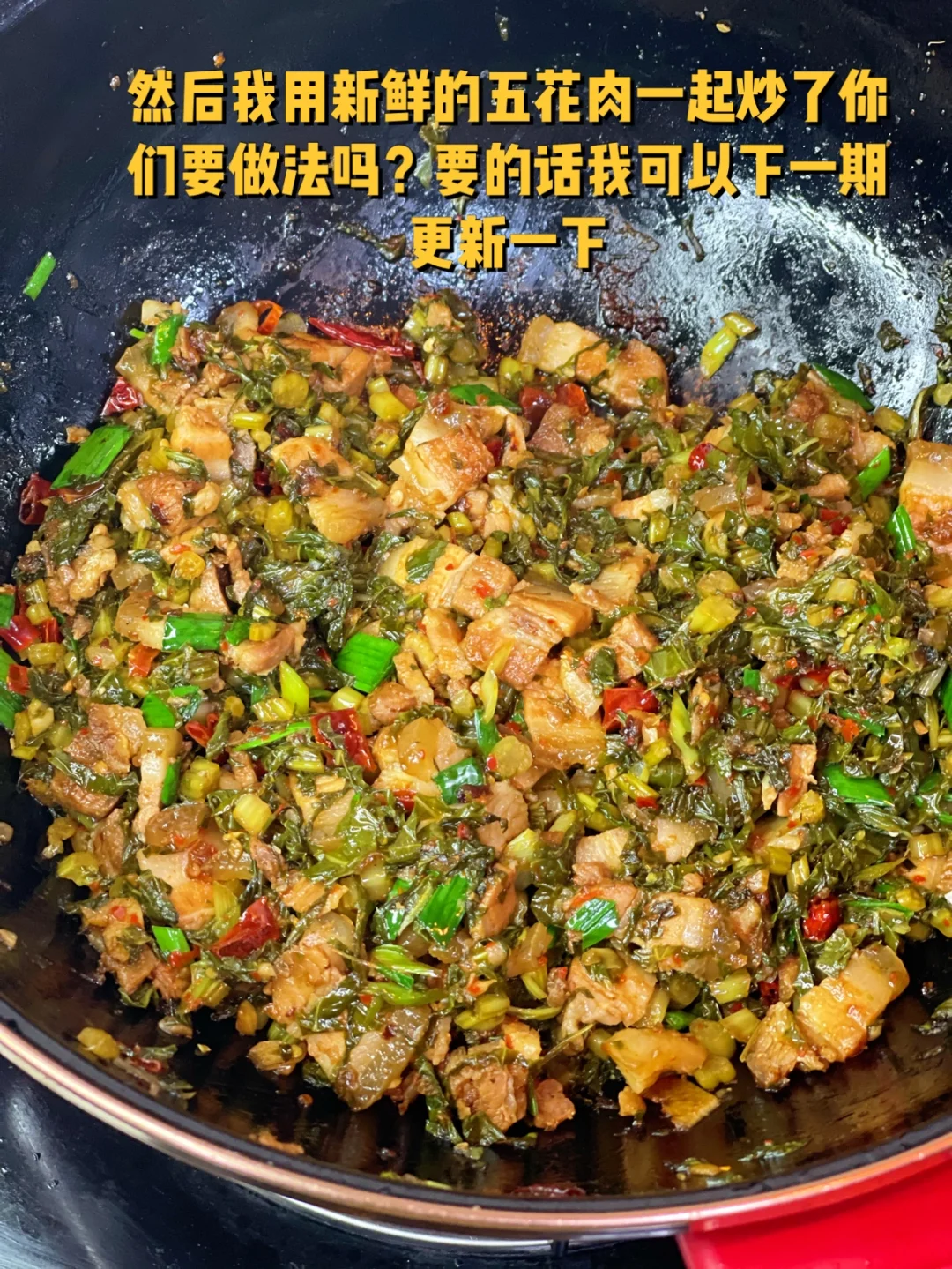 7. 然后我用新鲜的五花肉一起炒了你们要做法吗?要的话我可以下一期更新一下,我能说太下饭了吗?配米饭配稀饭,配面条都很赞啊!