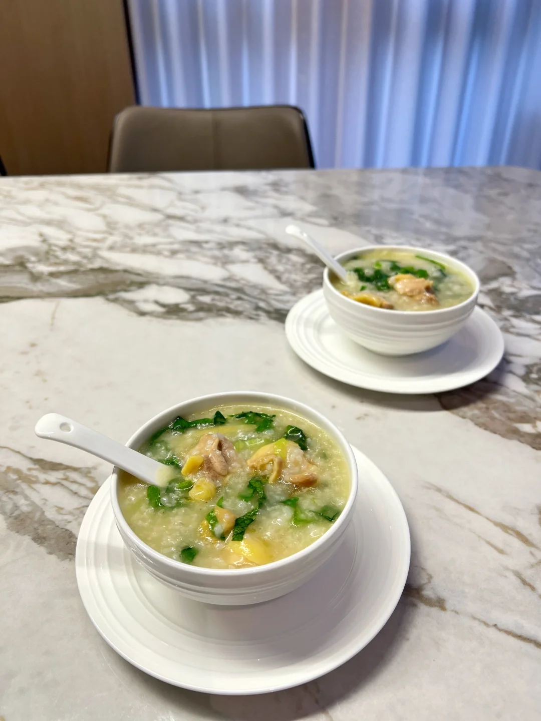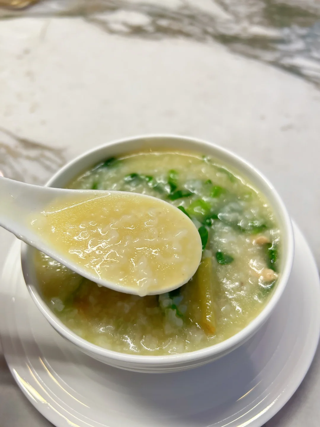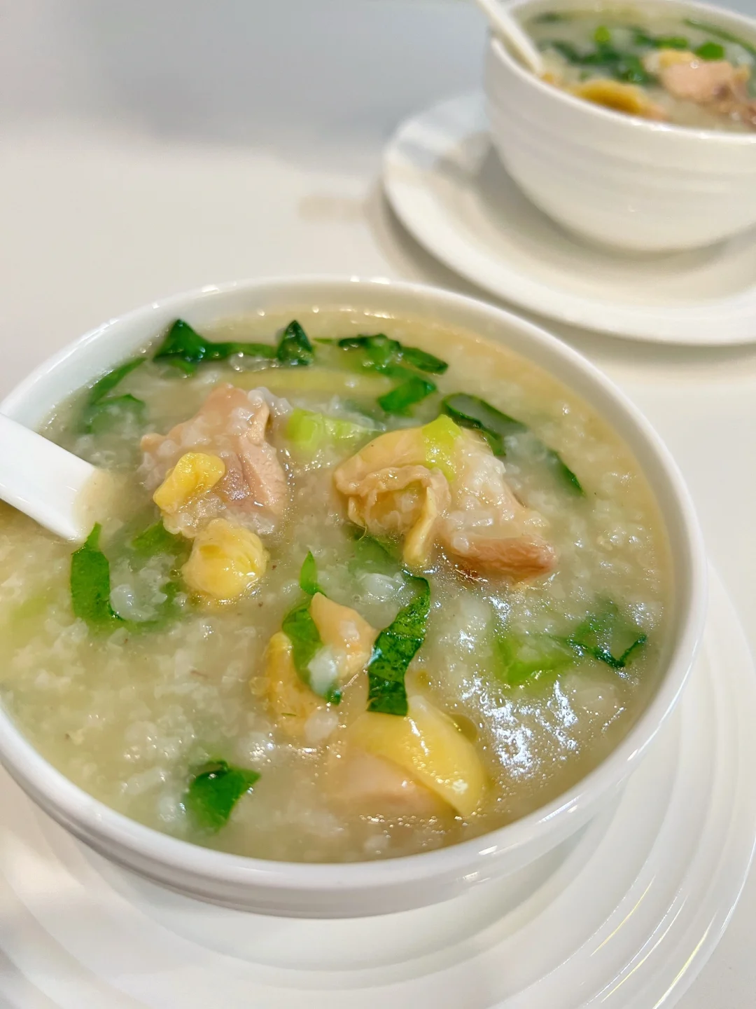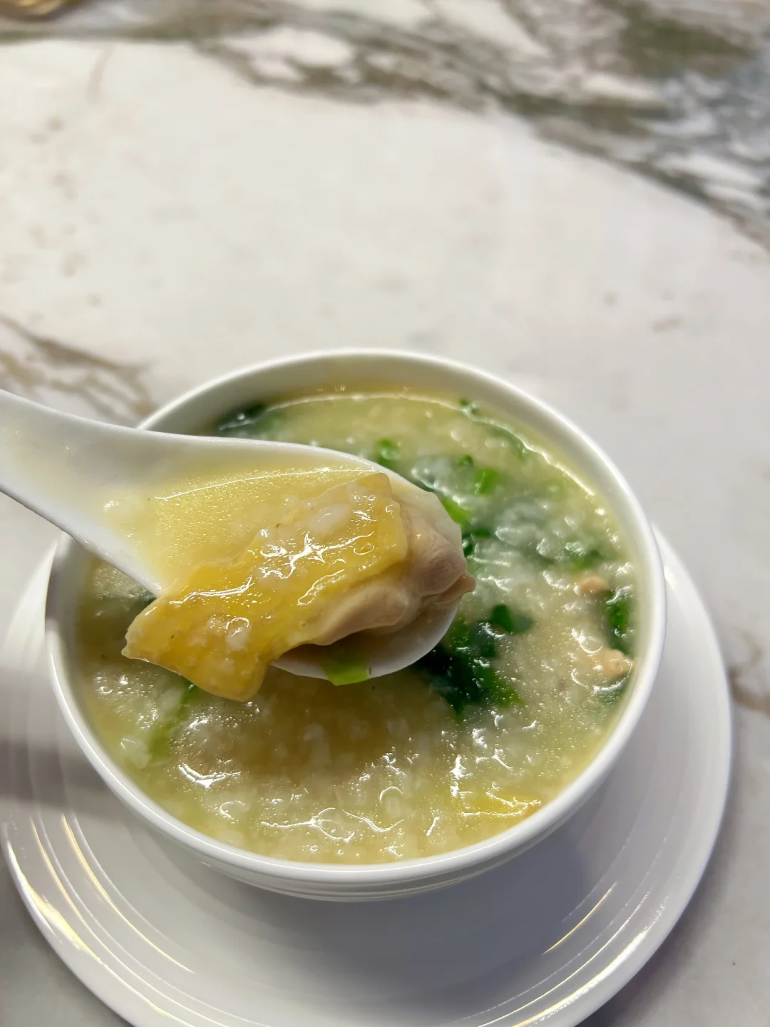 用粥底烫得刚刚熟的鸡肉嫩滑无比,搭配脆嫩爽口的菜丝,绝对鲜到你眉毛都要掉下来。
