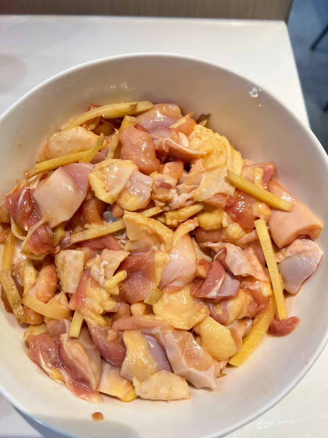 1⃣️鸡剔骨,肉切成小块备用。