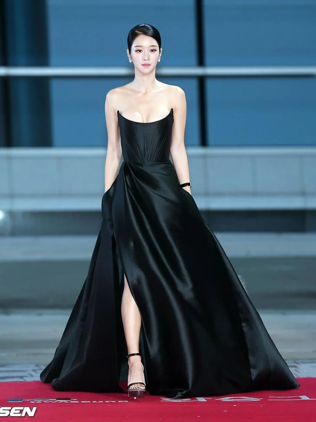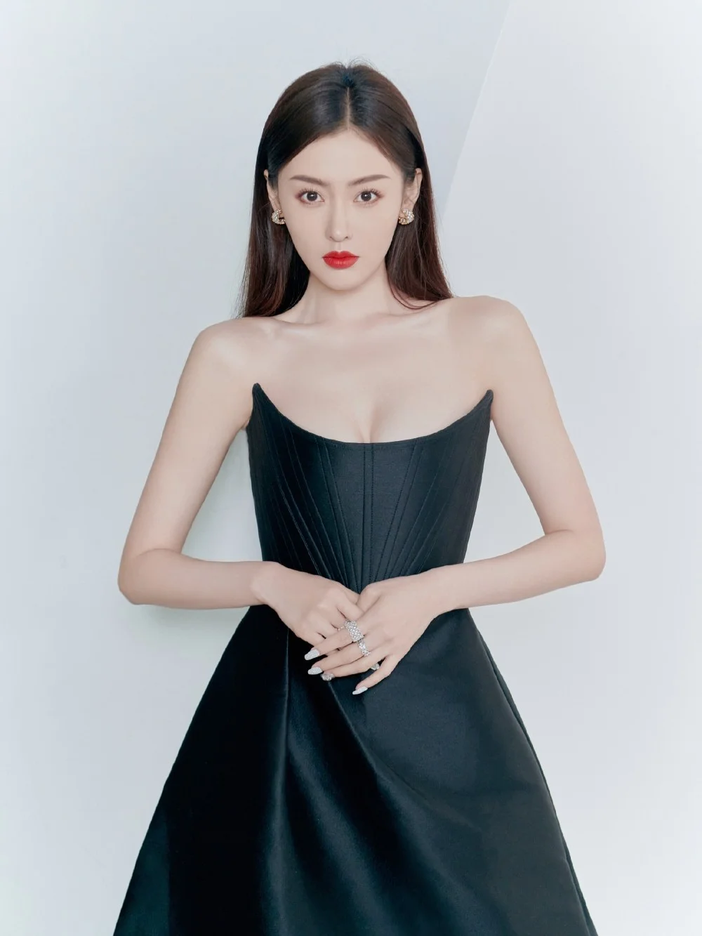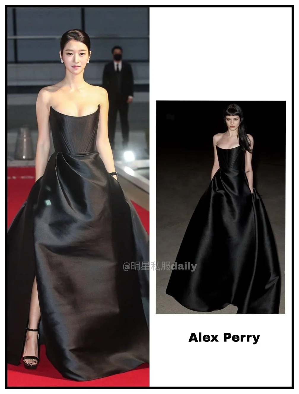 张天爱、徐睿知穿同款黑色性感抹胸礼服裙~