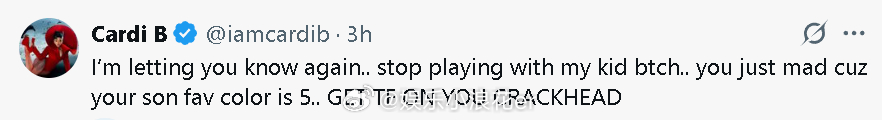 卡迪碧喊话麻辣鸡停止口水战但两位女士似乎并没有要休战的意思……依然互相大骂in
