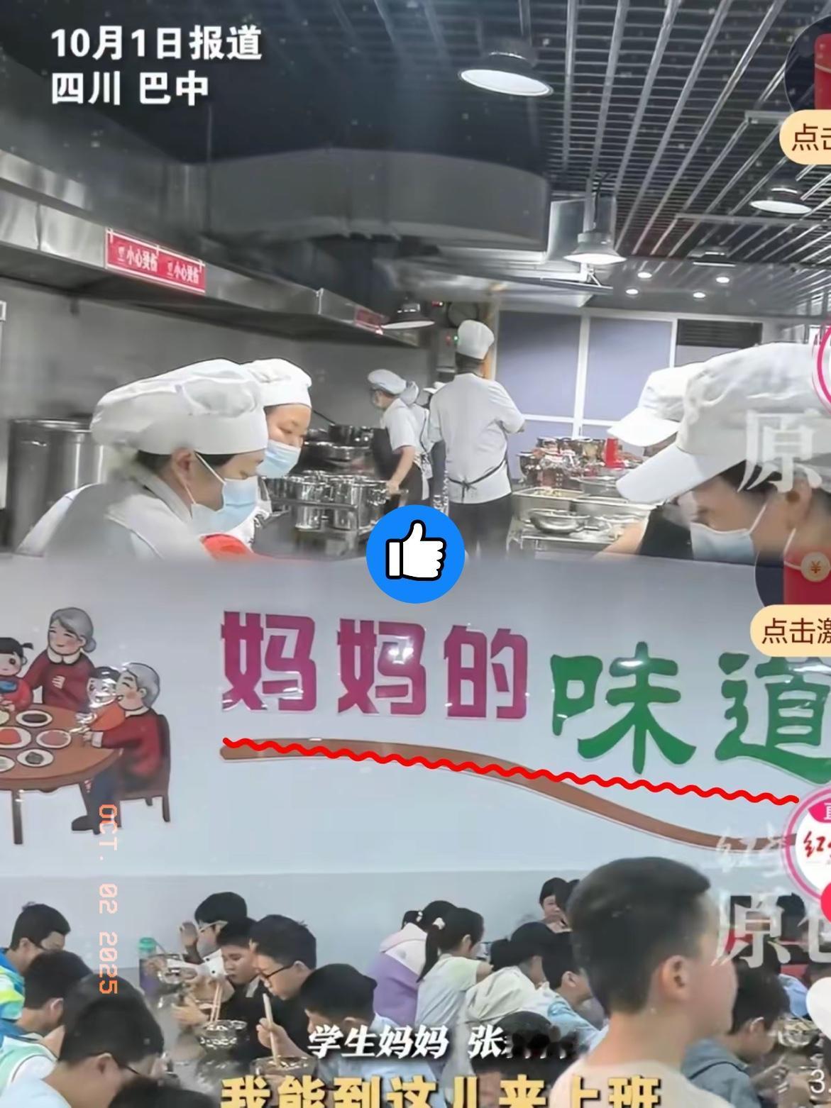 四川巴中打响了第一炮 谁能想到呢,上海都无法解决的学校食堂食品安全问题,被四川巴中的一所小学完美解决了! 这所小学的“妈妈食堂”就听这名字都觉得特别温馨,特别有安全感,以后学校的就餐食品安全问题就不会发生了。 这学校没走招标那套老路,直接招了本校学生的家属来做饭,18位妈妈加2位奶奶,既给没事干的家长找了活,又把孩子的吃饭安全攥在了“自己人”手里。要知道,外面来的承包商眼里可能只有利润,可妈妈们不一样,自家娃也在这儿吃,食材新不新鲜、卫生到不到位,比谁都上心。 其实这招妙就妙在没搞复杂的监管套路,而是把“家长的守护欲”变成了最靠谱的安全锁——毕竟没有谁会比妈妈更在意孩子的一口饭。 现在巴中要在全市推这模式了,你们说这招该不该全国学?要是你家娃学校也搞“妈妈食堂”,你能放一百个心不?评论区聊聊!