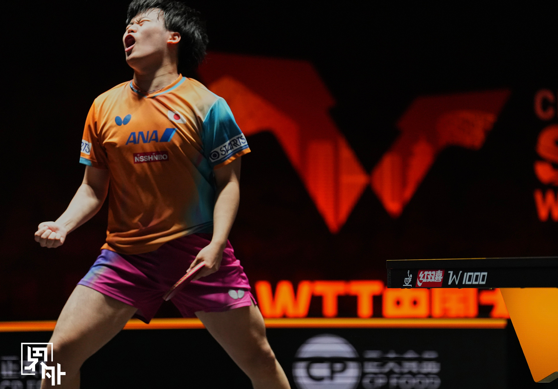 松岛辉空后滚翻庆祝男单1/8决赛,梁靖崑两度落后两度追平,鏖战至决胜局后,8比1
