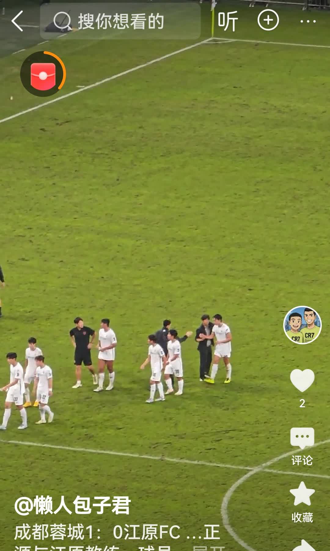 与江源FC赛后,蓉城主帅徐正源除与郑暻镐拥抱外,居然进场与对方球员逐一进行“摸头