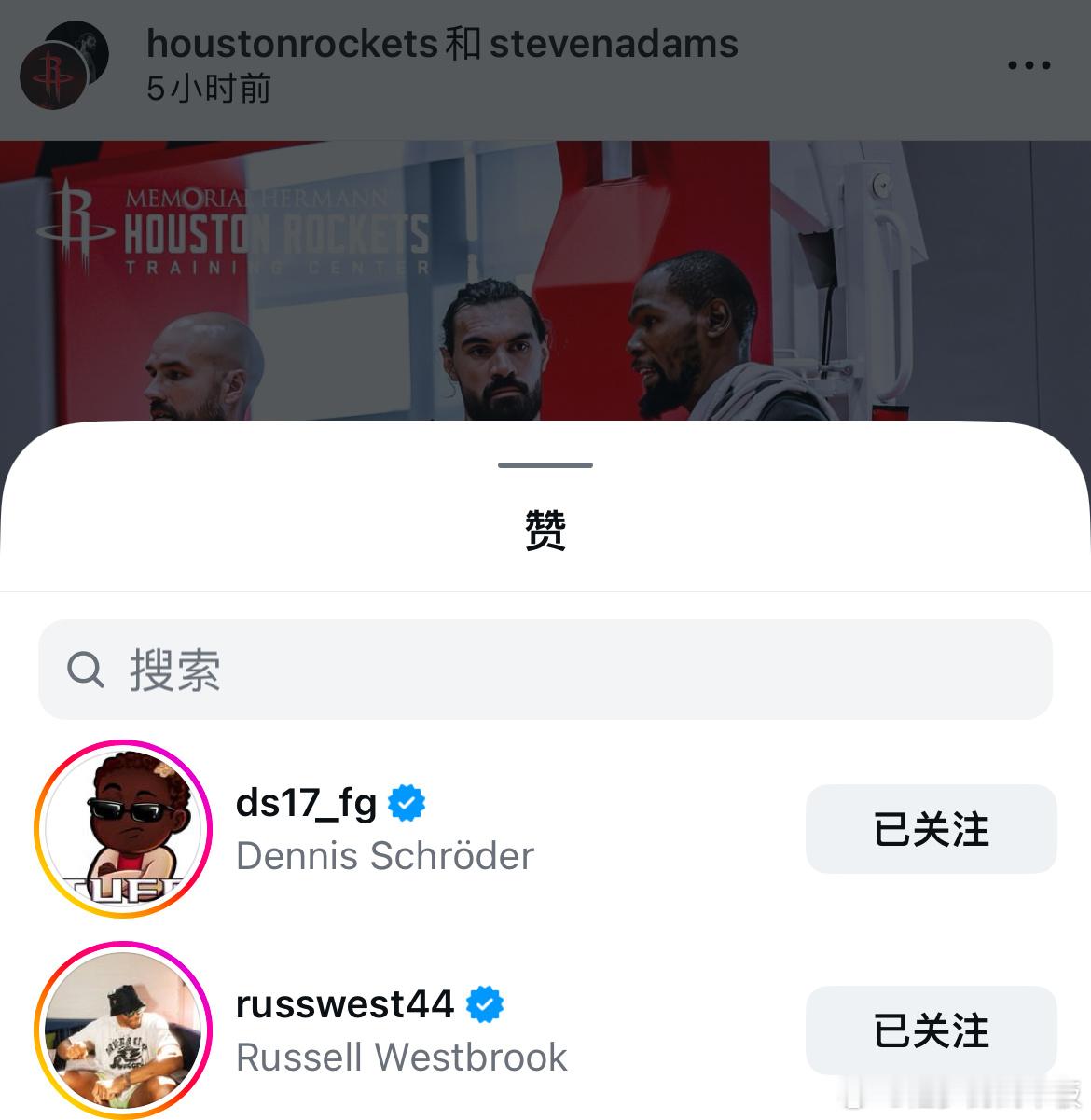 雷霆时期队友威斯布鲁克点赞了这篇推文👀