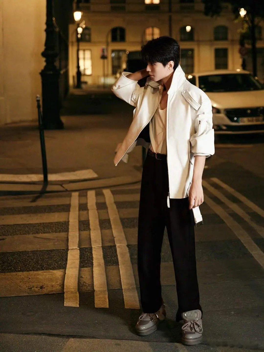 王俊凯白背心内搭 王俊凯时装周出图,太有范了🥰风衣加白色背心等于王炸