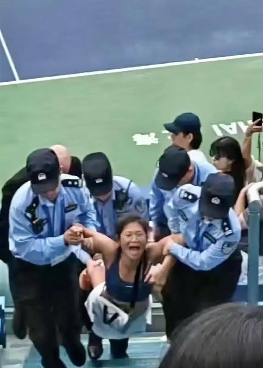 上海大师赛名场面,女球迷实名体验抬着出去! 喝了酒跑到上海大师赛现场被警察抬出场