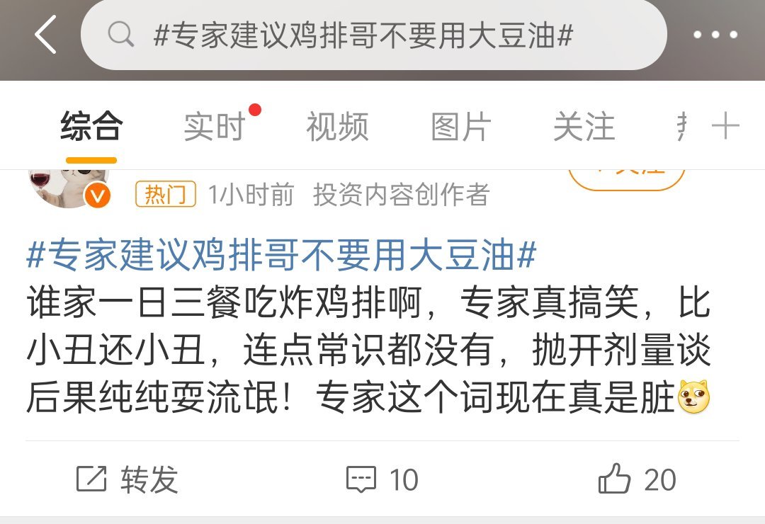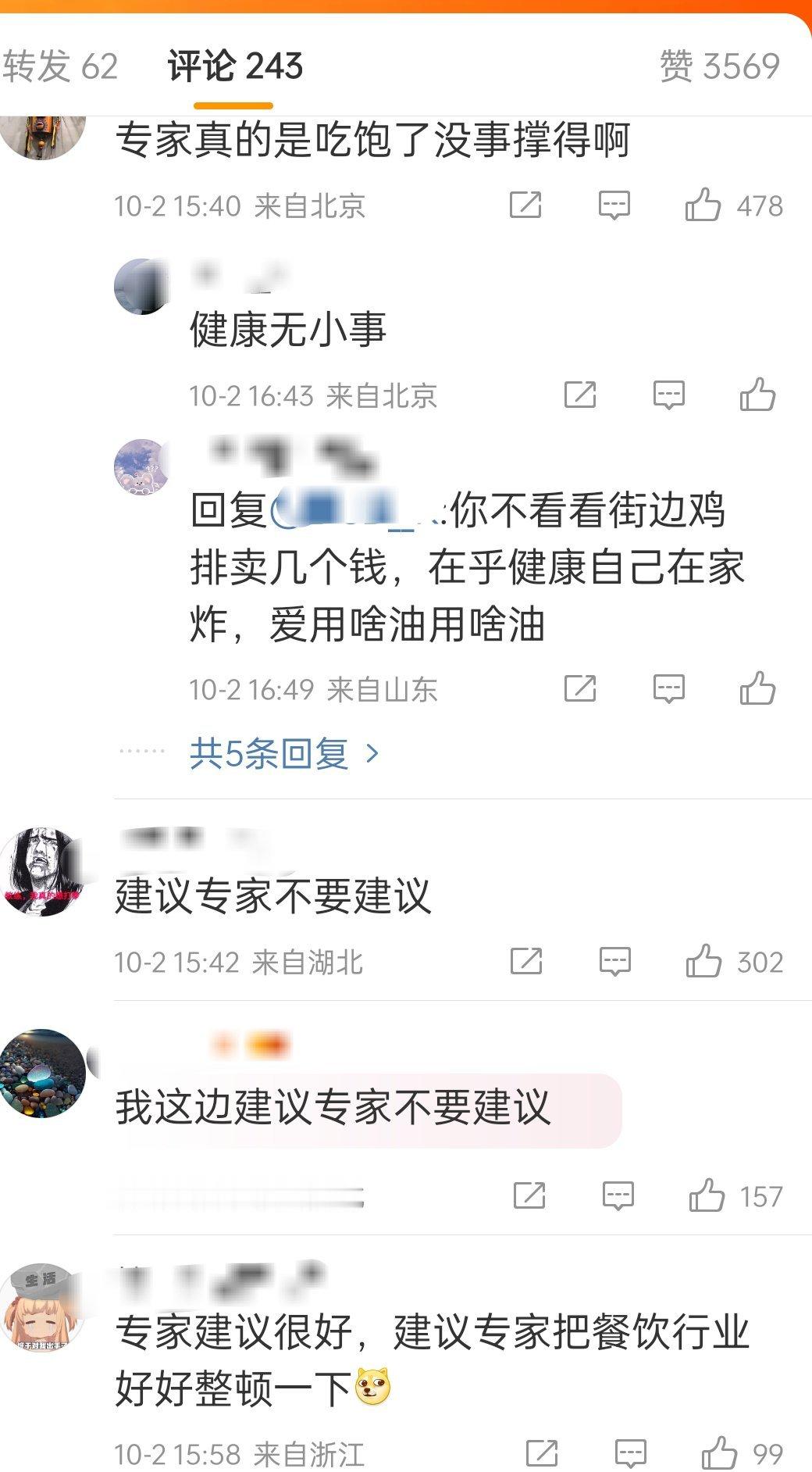 不出意外,专家又被网友吐槽了6块钱的鸡排诶专家建议鸡排哥不要用大豆油