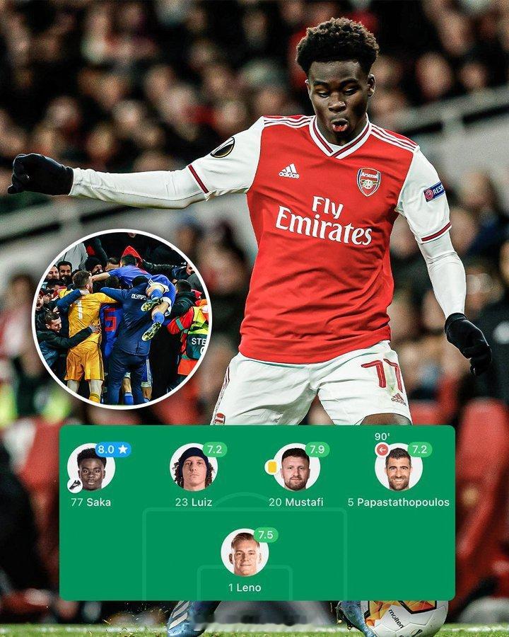 2020年欧联杯对阵奥林匹亚科斯时的阿森纳后防线 金秋观赛季 中秋元气担当 阿森纳2比0奥林匹亚科斯
