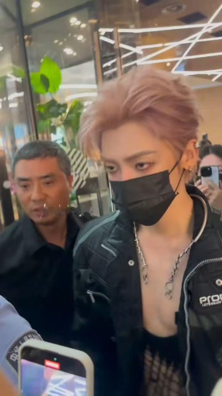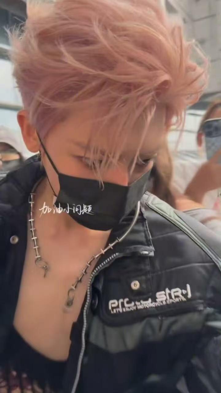 侯明昊音乐节粉发造型舞台小侯出现!!!这个粉发好有爱豆味儿!太帅了!