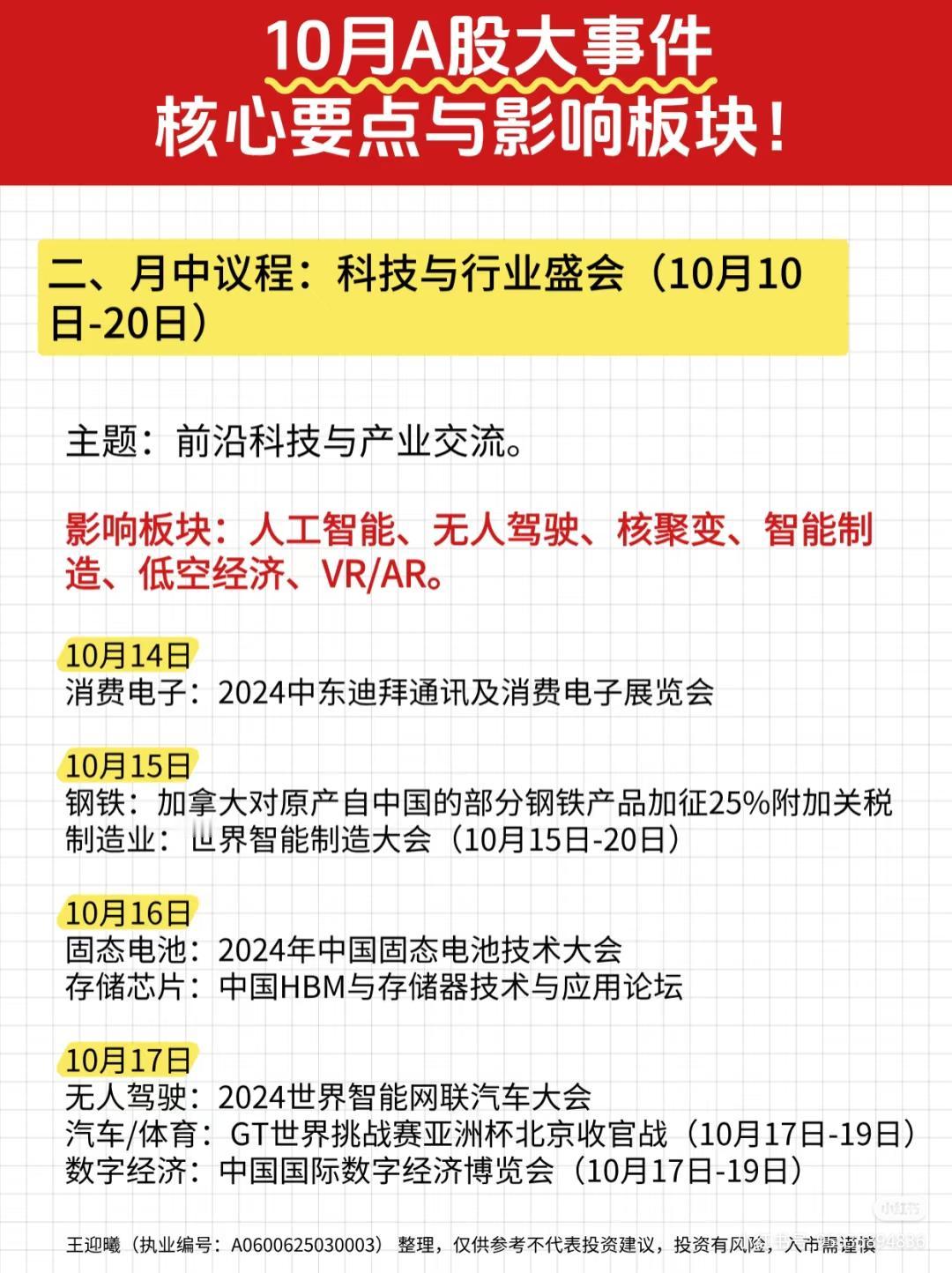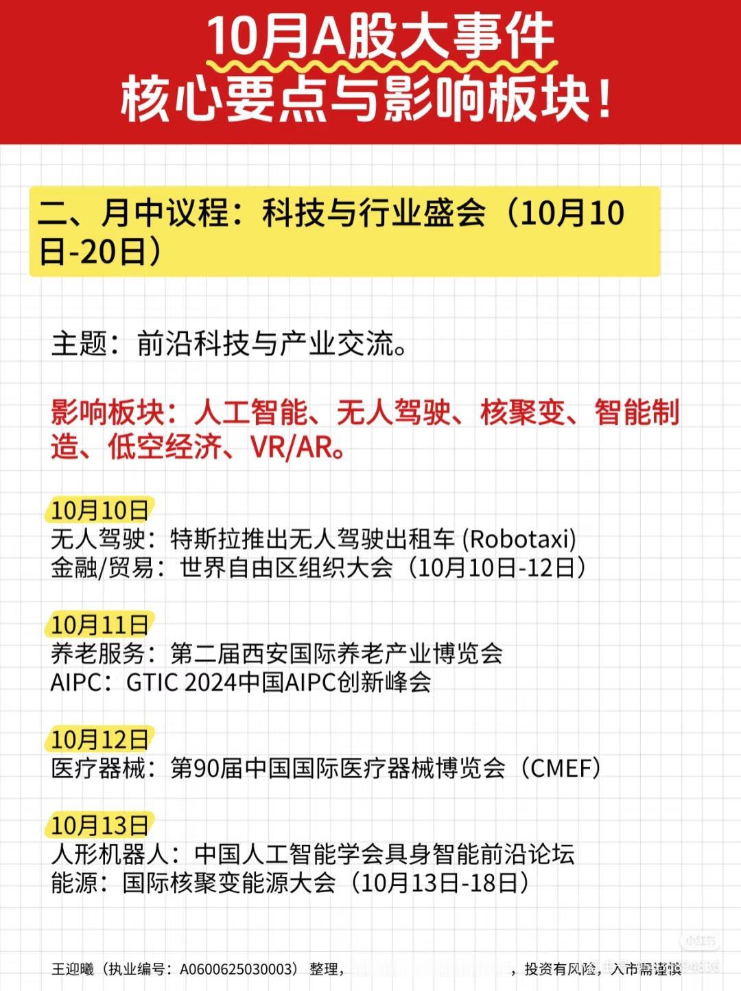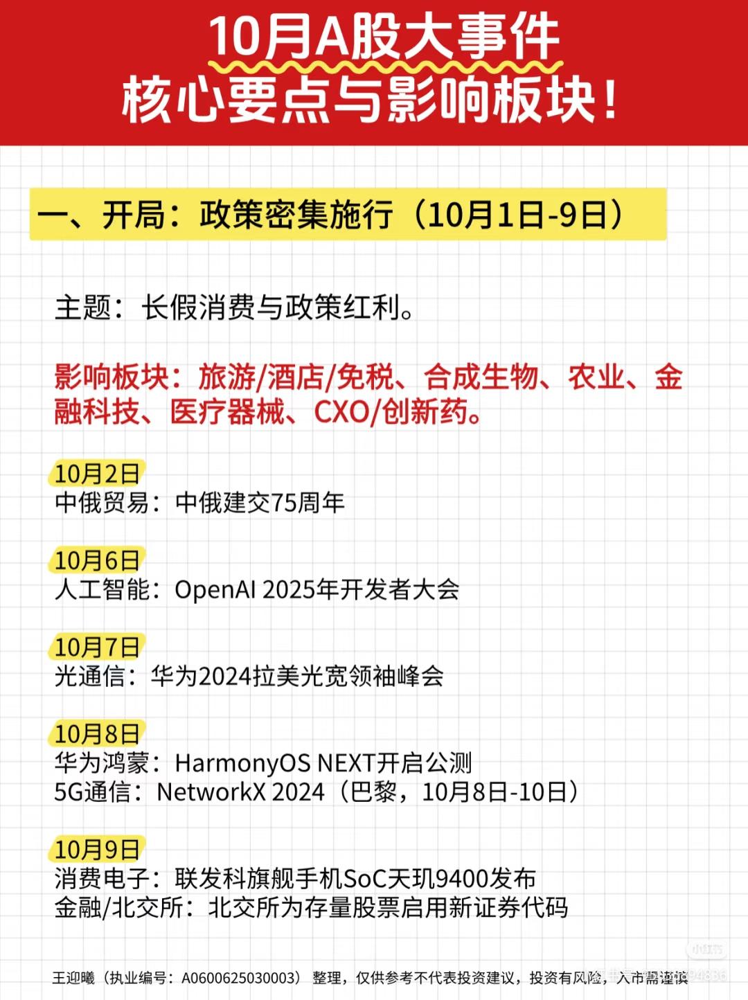 最新版本,十月份重大财经事件汇总(附相关概念龙头代表)