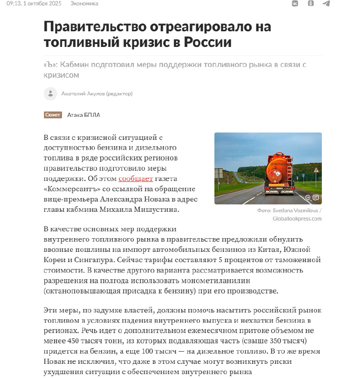 报道指出,这些措施旨在在国内产量下滑的情况下增加燃料供应,防止市场短缺。目前俄罗斯每年进口约45万吨燃料,其中35万吨以上是汽油,另有柴油。