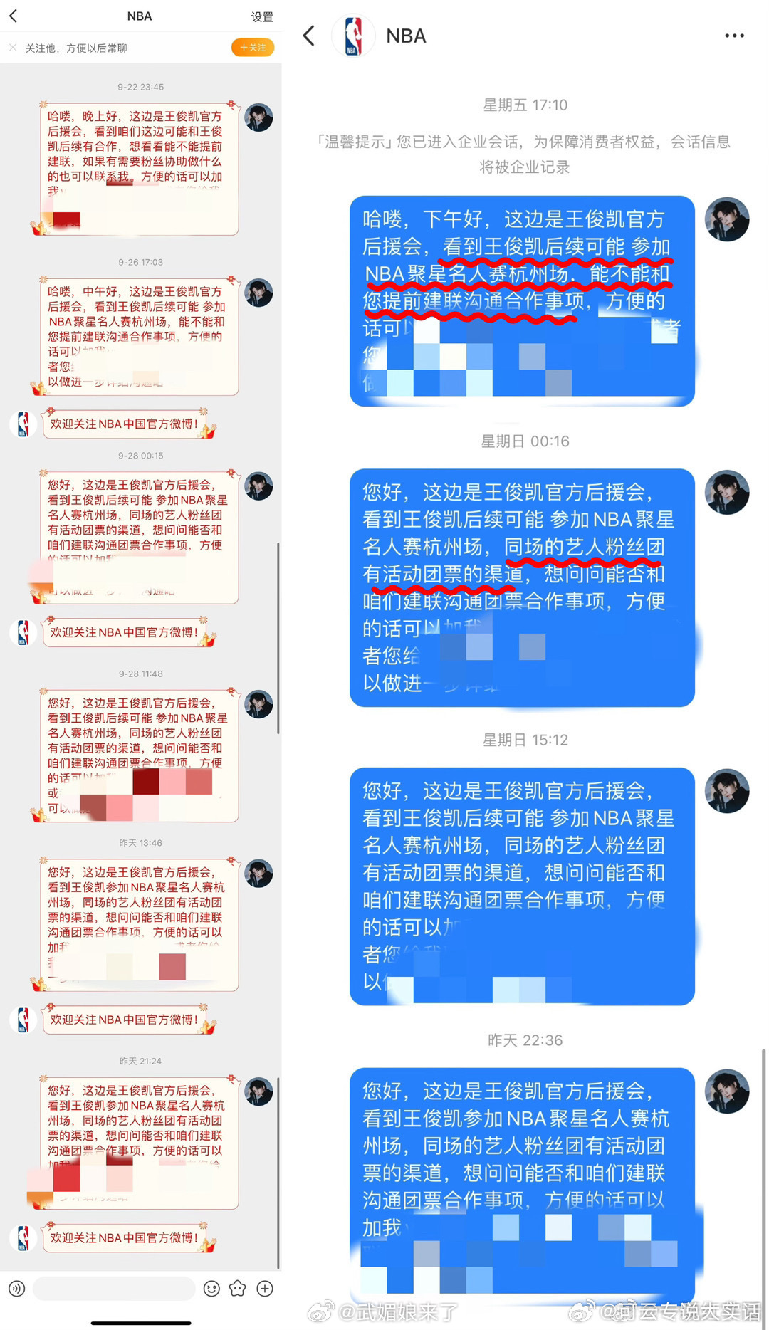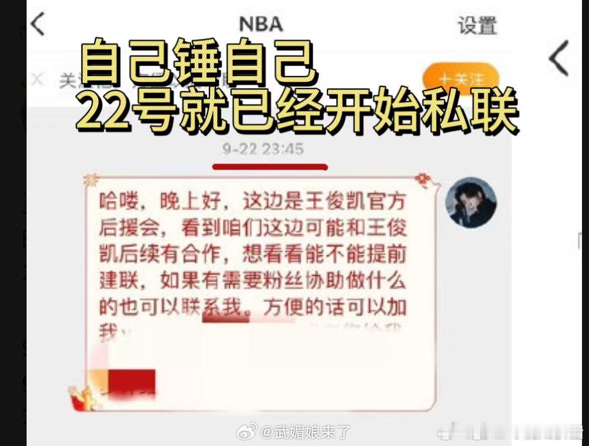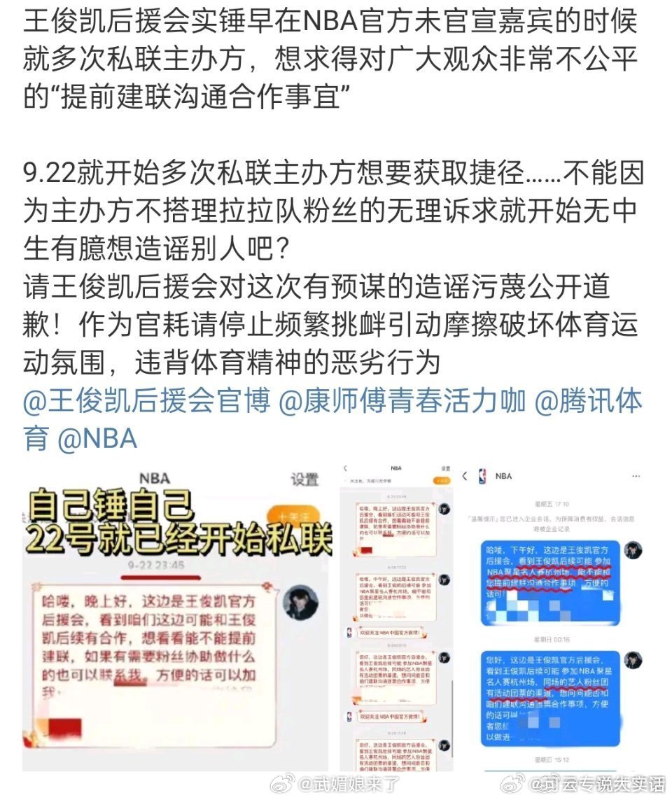 笑亖,王俊凯家因为任嘉伦粉丝做的NBA问卷调查造谣人家有团票,结果通过自己放出来的截图反而实锤了王俊凯后援会早在9/22就私联nba官方![笑cry]