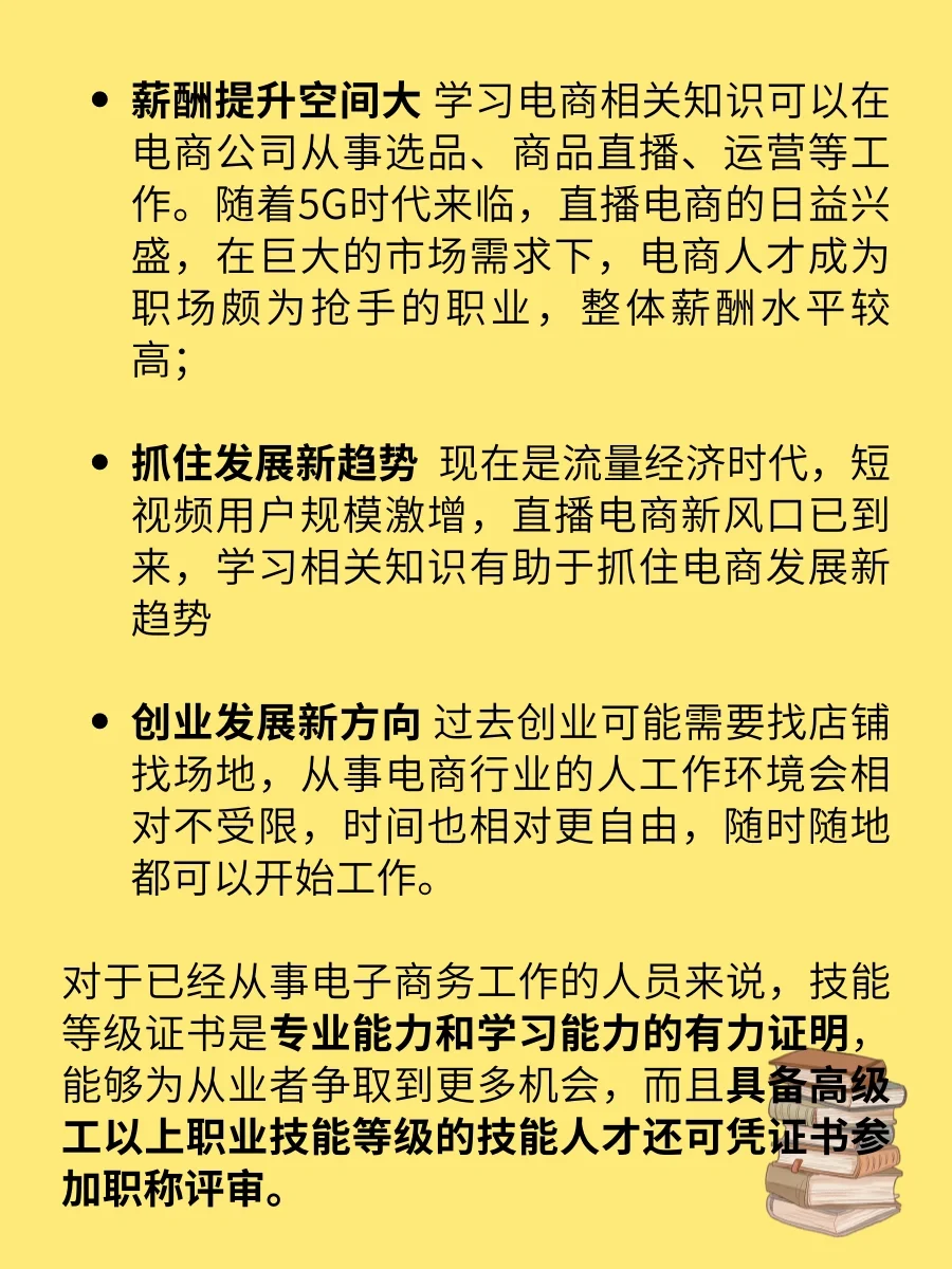 互联网+的大势无法逆转,以后我们谁都无法抽身其中,掌握互联网商务技能,考取电子商务师技能等级证书,不管你在任何工作岗位都是有益无害的。