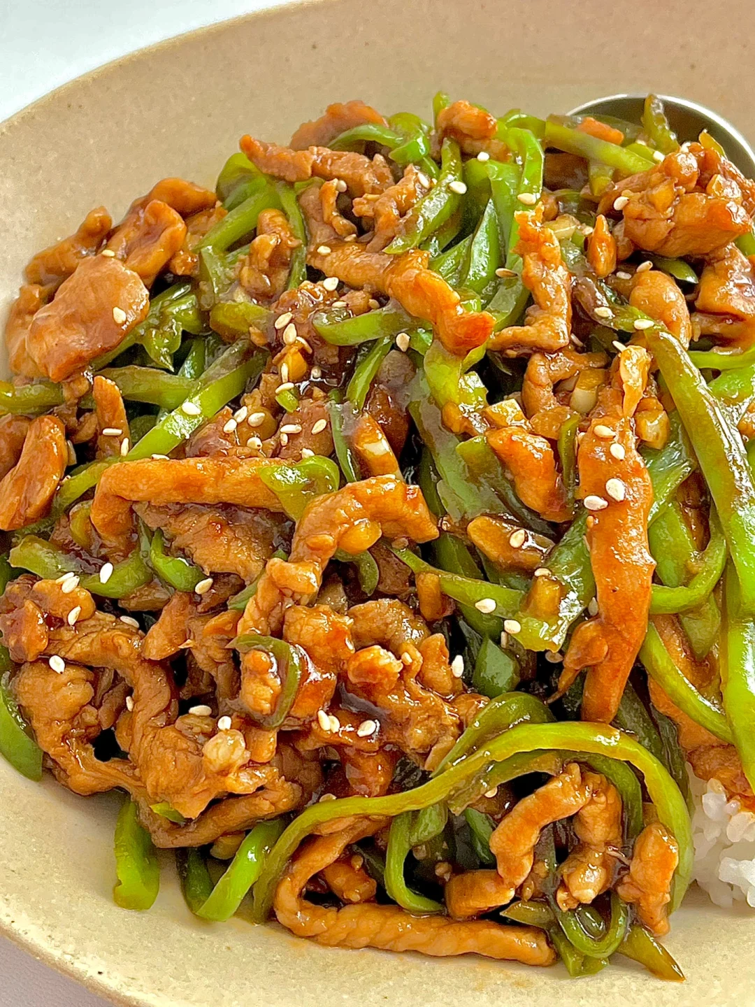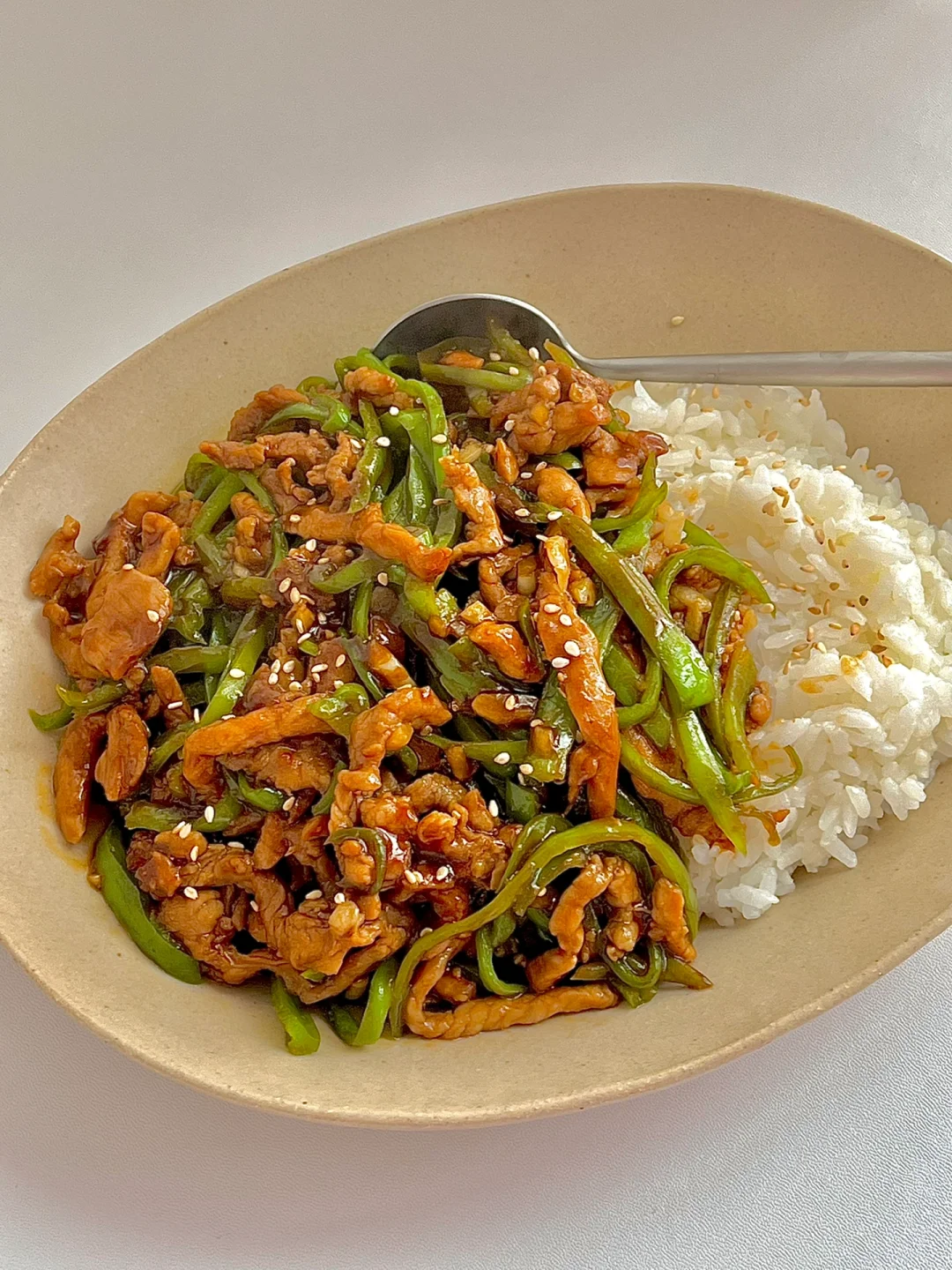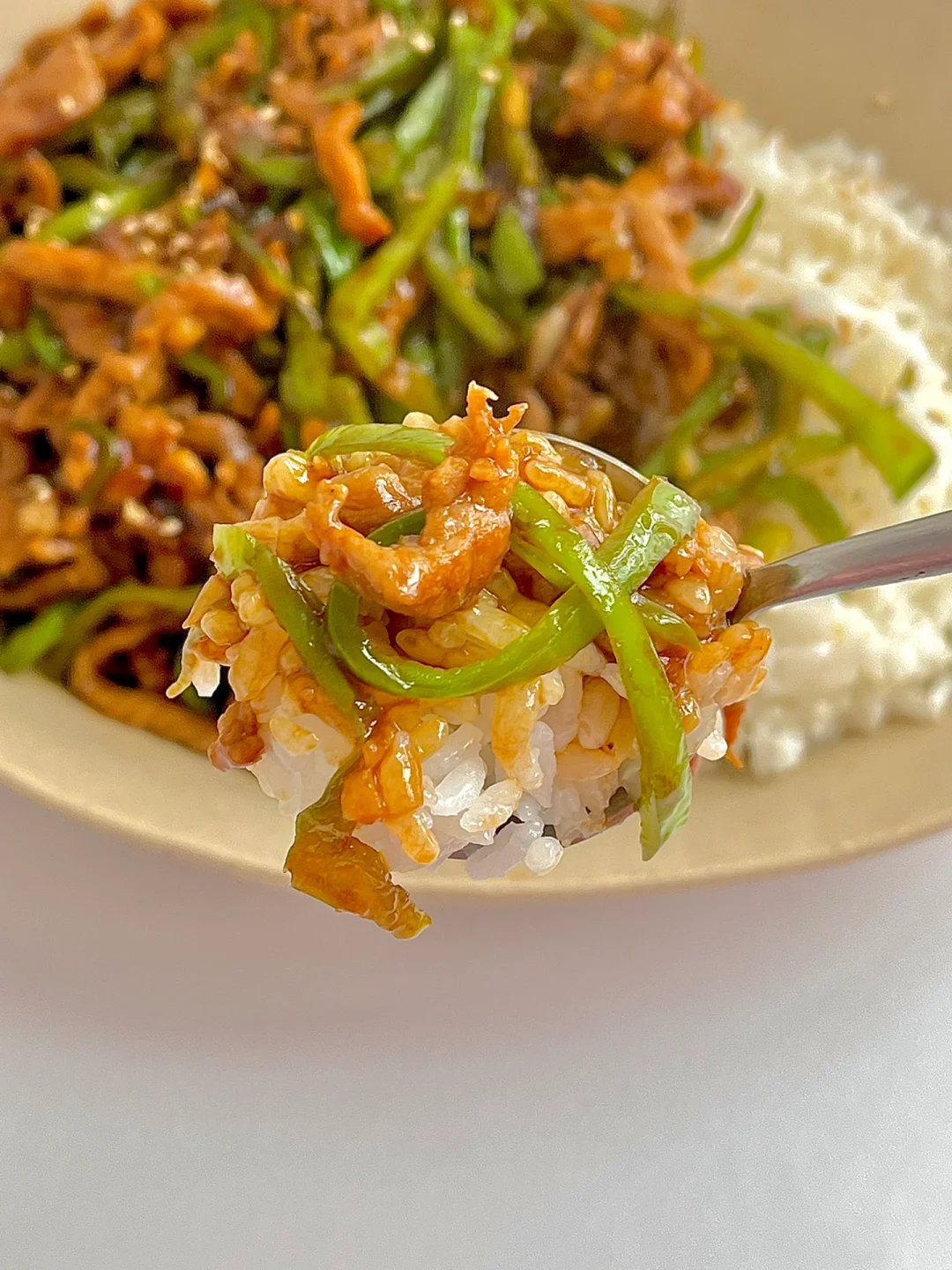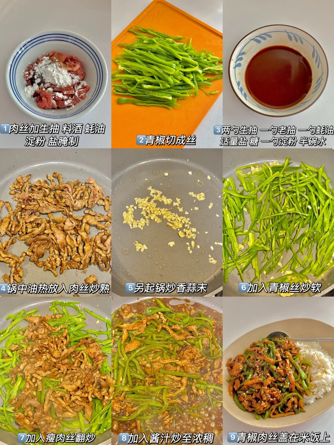 工作日有的时候点外卖我都会点的青椒肉丝盖饭,今天在家自己安排上,觉得自己做的比外面的还好吃,真的太下饭了😋