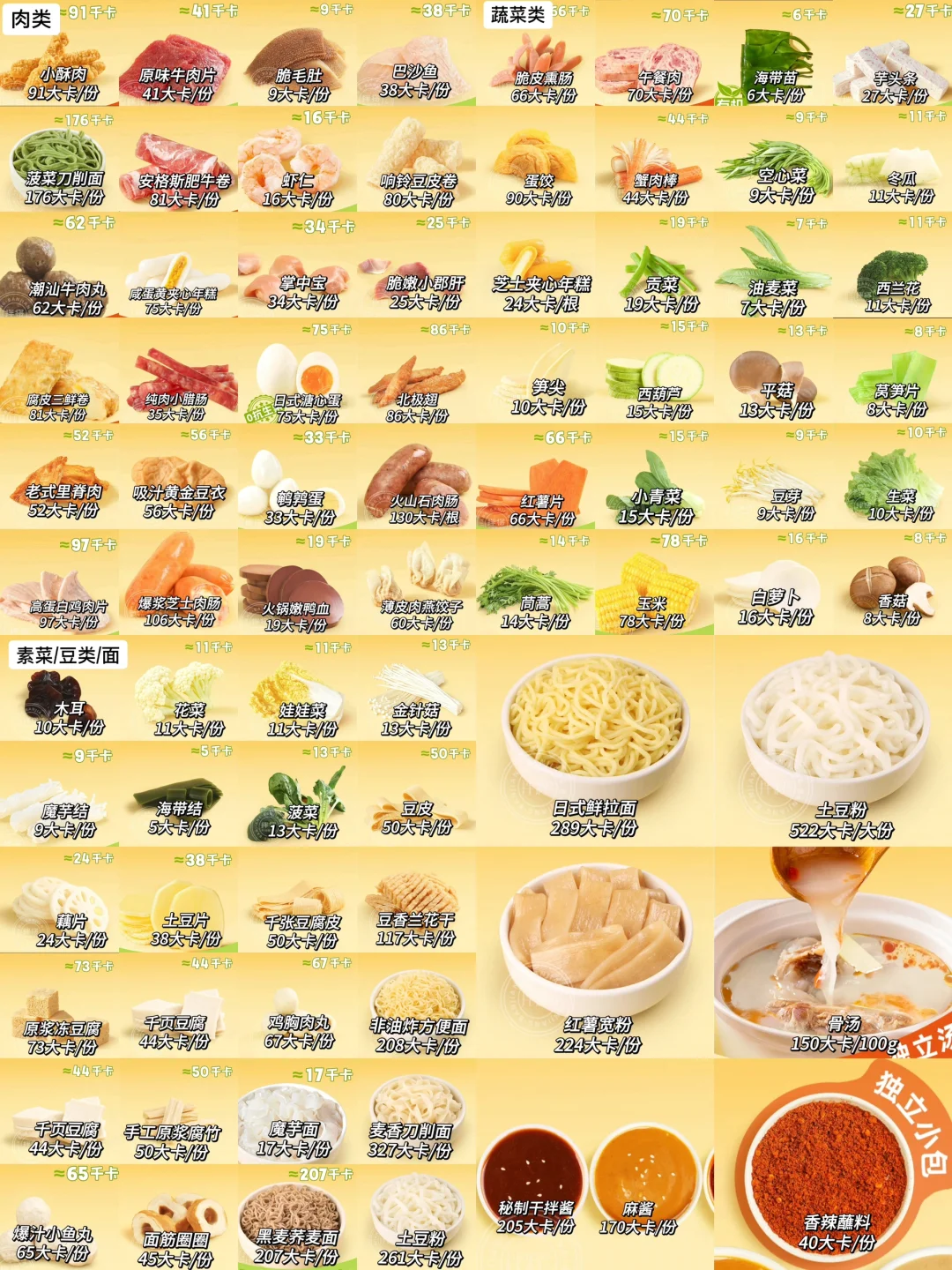 hello 大家好🙋 我是莹莹 一个喜欢研究外食不长胖的女孩 今天整理的是拌将的热量! 看看500大卡怎么点拌将吧~ 【500大卡怎么点?】 👉底料:酱料基本是90g一盒,约190-220大卡/盒,一盒放1/2或者2/3。(约120大卡-150大卡)。 👉蔬菜:5-8份,约10-15大卡/份,约150大卡。 👉肉类:2份高蛋白类约40-50大卡/份,约150-200大卡。 ✅共计:1份底料150大卡+8份蔬菜150大卡+2分肉类200大卡=500大卡 ⚠️如果想要吃主食的姐妹可以不放底料,换成油醋汁然后再点一份面类,但是不能全吃可以选择1/3主食或者1/2,这样算下来差不多500大卡。 ⭕️减脂小tips: 1️⃣高蛋白肉类可以选鸡肉片、鹌鹑蛋、鸡蛋、巴沙鱼片、毛肚、鸭血等这些一看就是天然的食材。 2️⃣半加工丸子和主食类可以少吃,选碳水的话可以选择玉米、红薯片、土豆片等。 3️⃣要是觉得麻酱热量太高,可以选择油醋汁/骨汤。 4️⃣豆制品的热量其实并不是很低,吃的时候尽量选天然豆制品,别选油炸加工过的哦! 5️⃣腊肠、培根、年糕这些油脂含量高,喜欢吃的姐妹也要注意控制好量哦! 6️⃣日常吃不到很多种类的新鲜蔬菜的话,选择麻辣拌也是不错的选择!就算每天上班也需要补充膳食纤维哦~ 好啦,本期的分享就到这里啦 我们下期再见👋