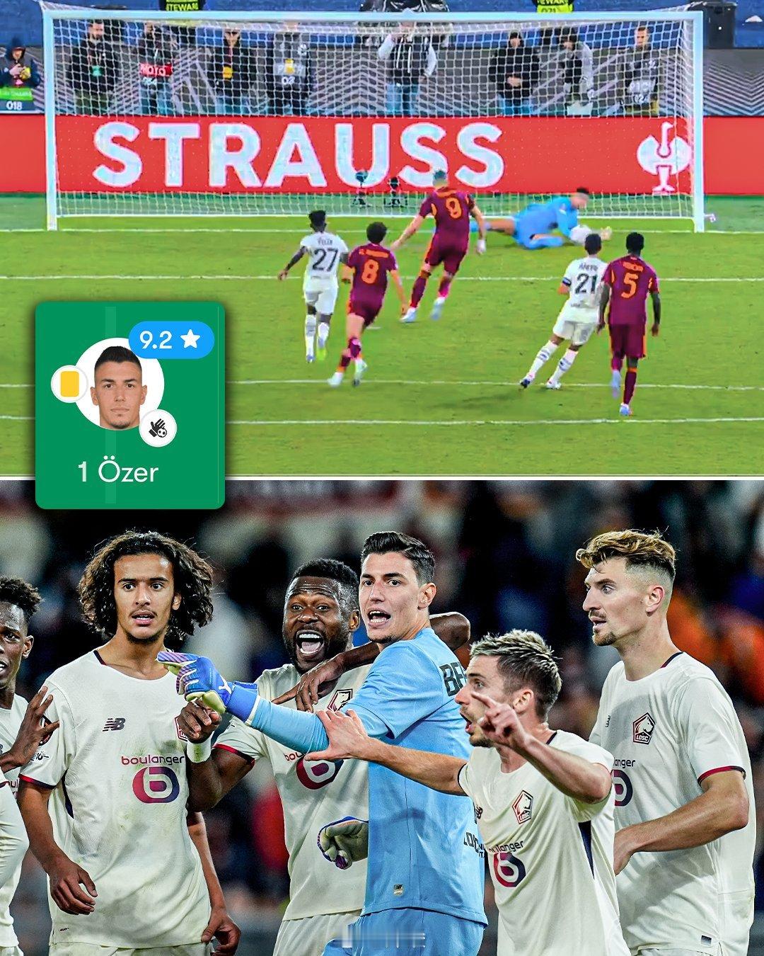 罗马一个点球连罚三次,三次都被里尔守门员扑出。