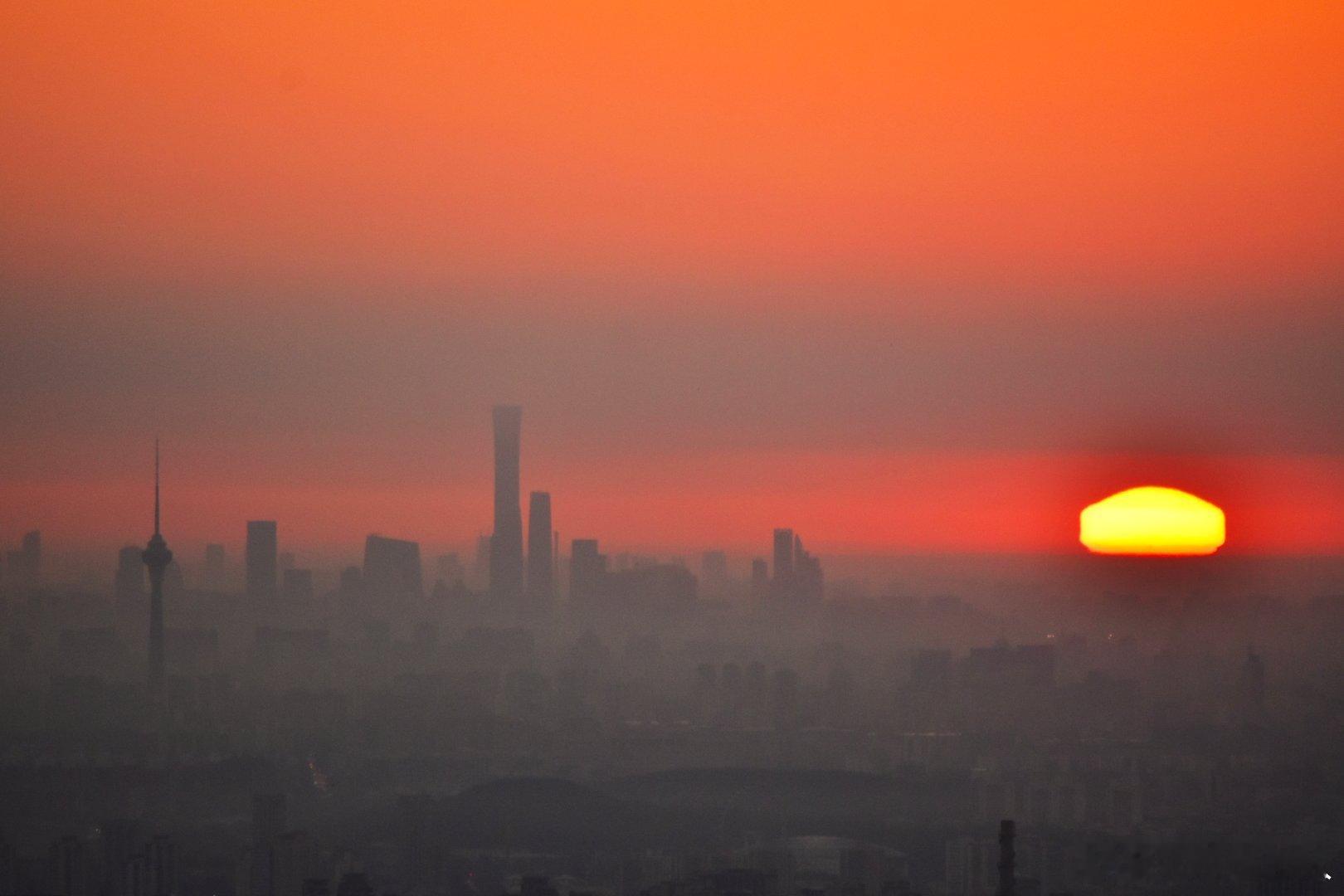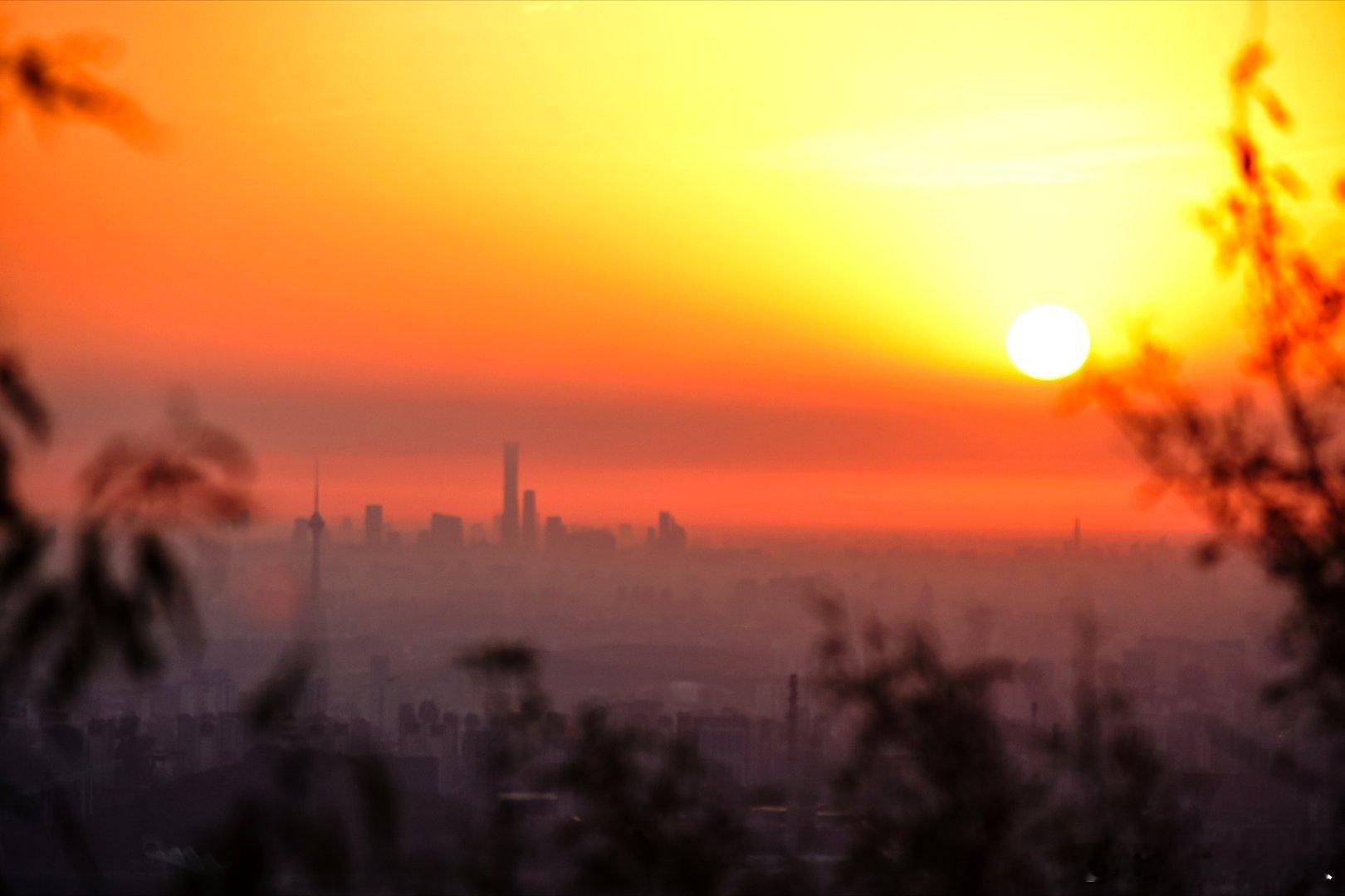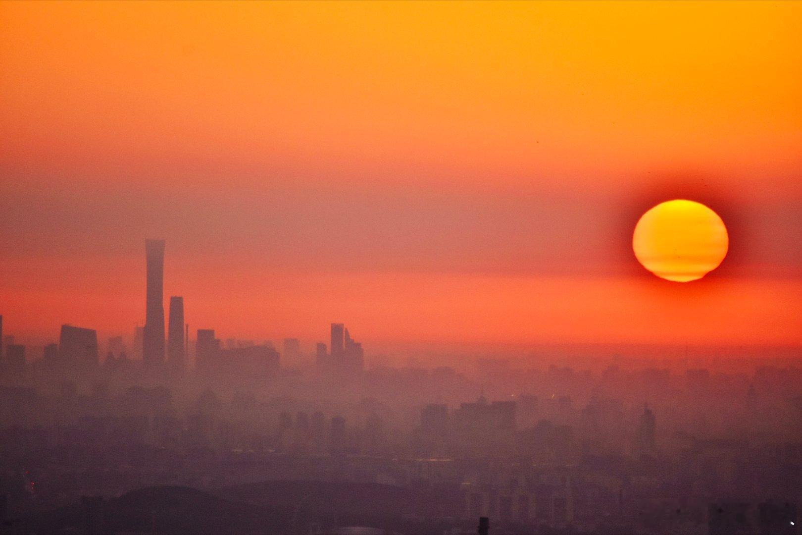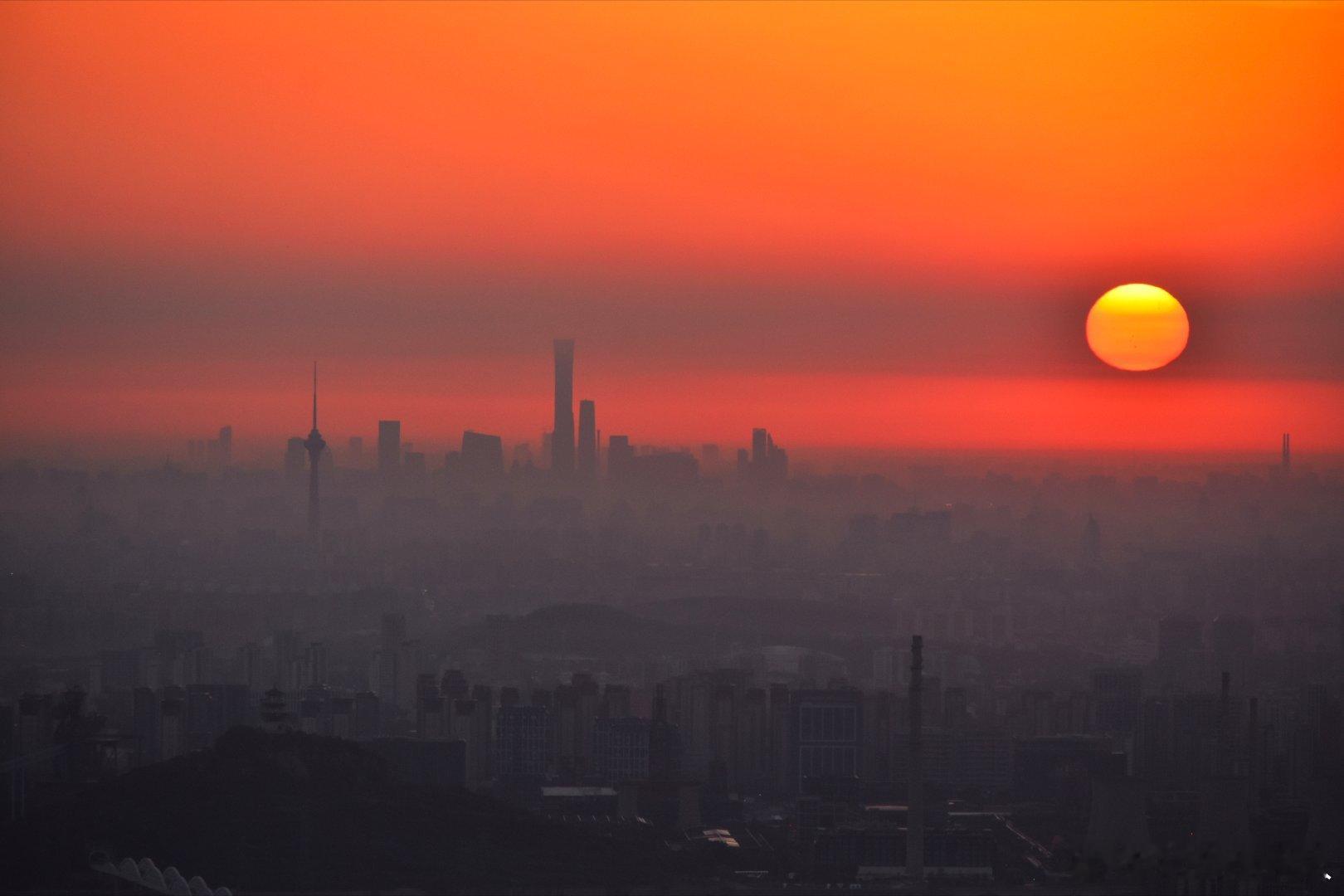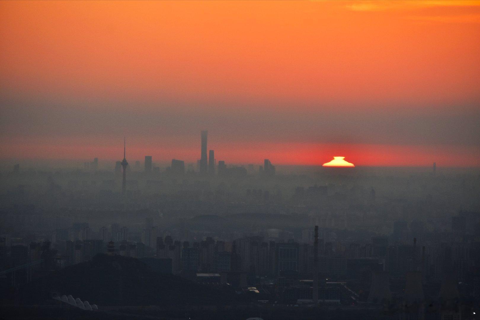 长焦镜头中的北京日出时刻摄影