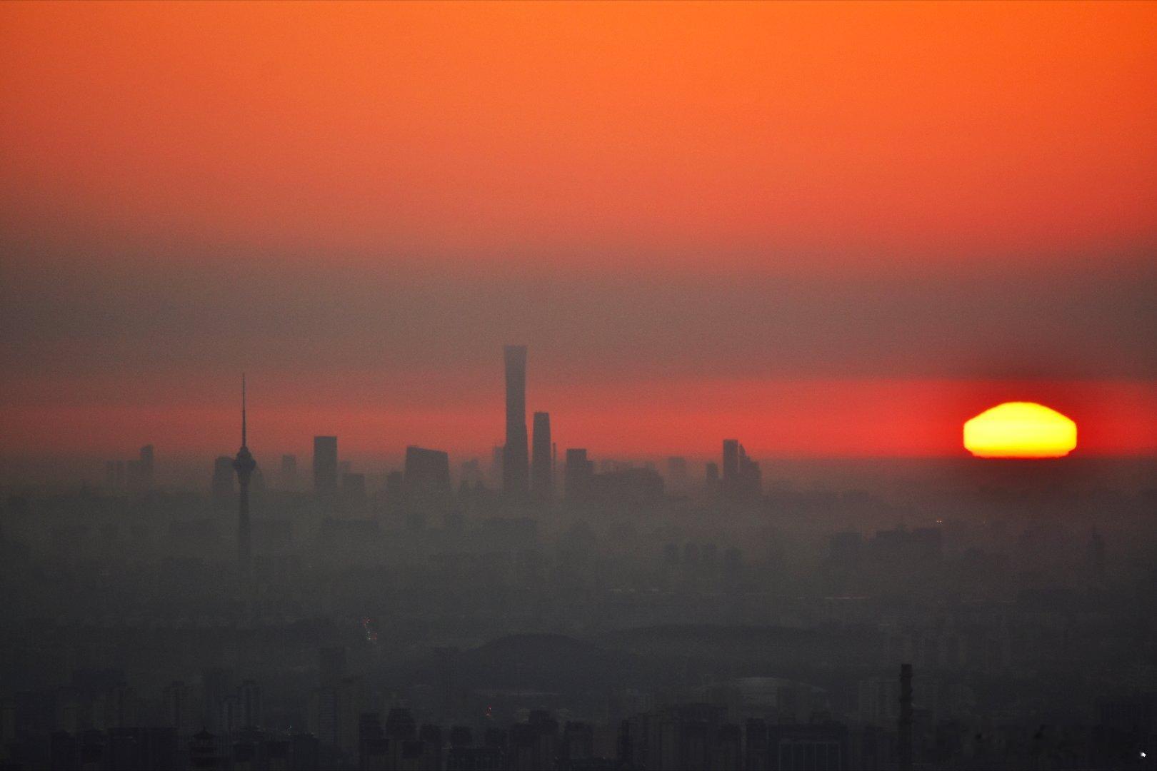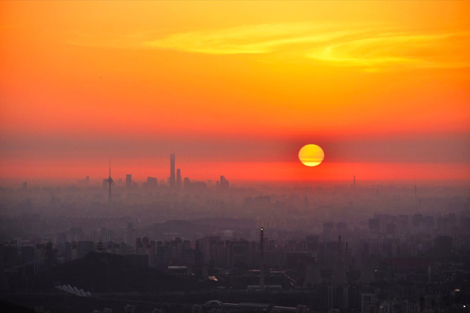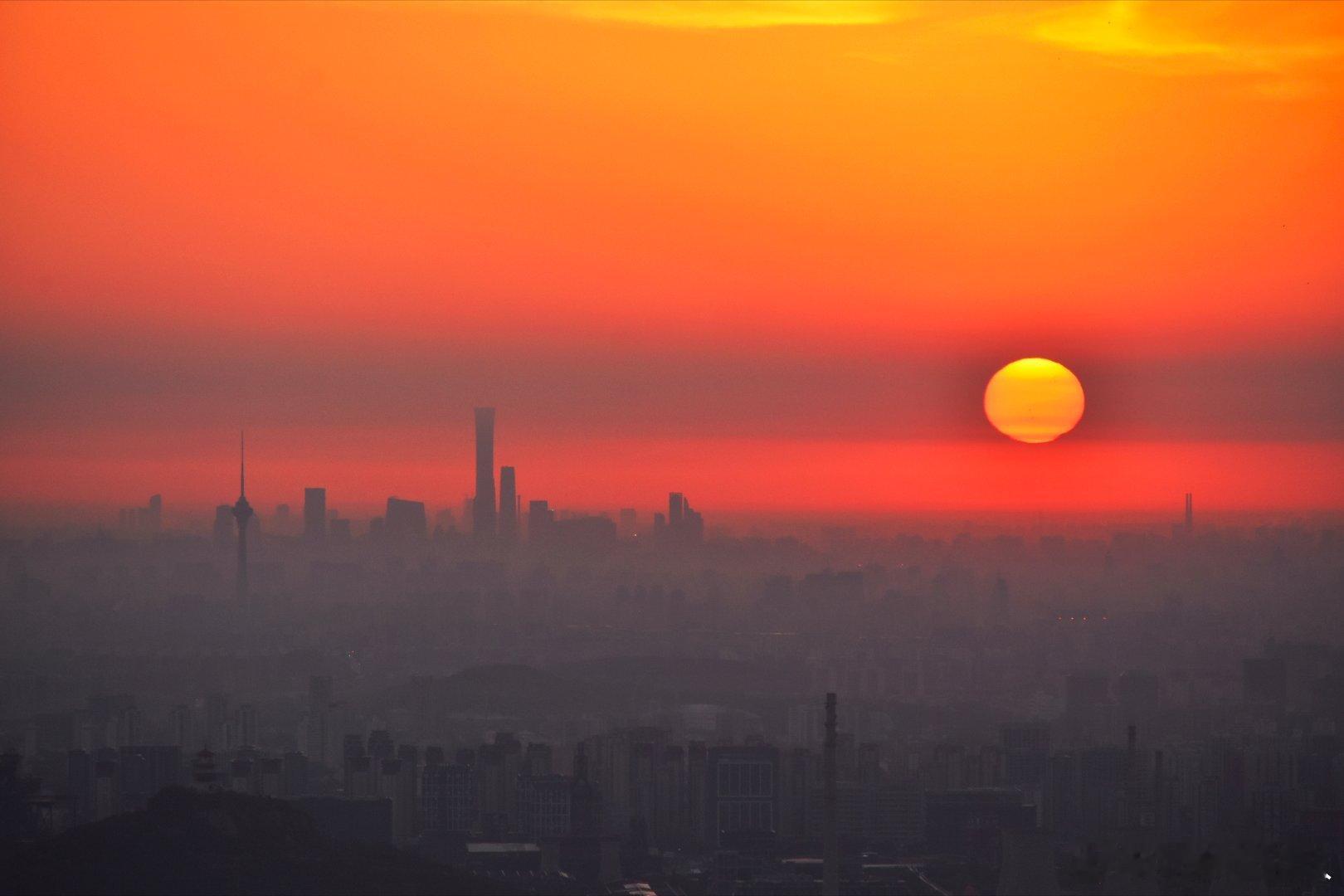 国庆节,北京迎来绝美日出,日出东方耀京城。