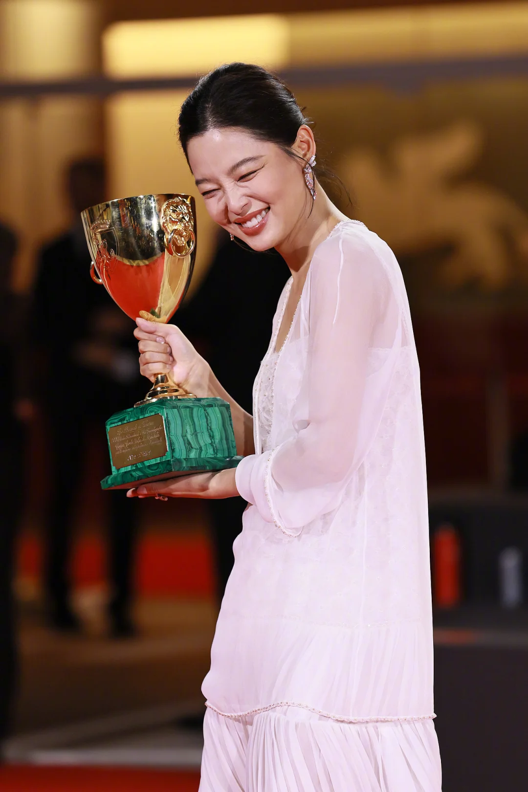 在威尼斯捧起沃尔皮杯的辛芷蕾好美!