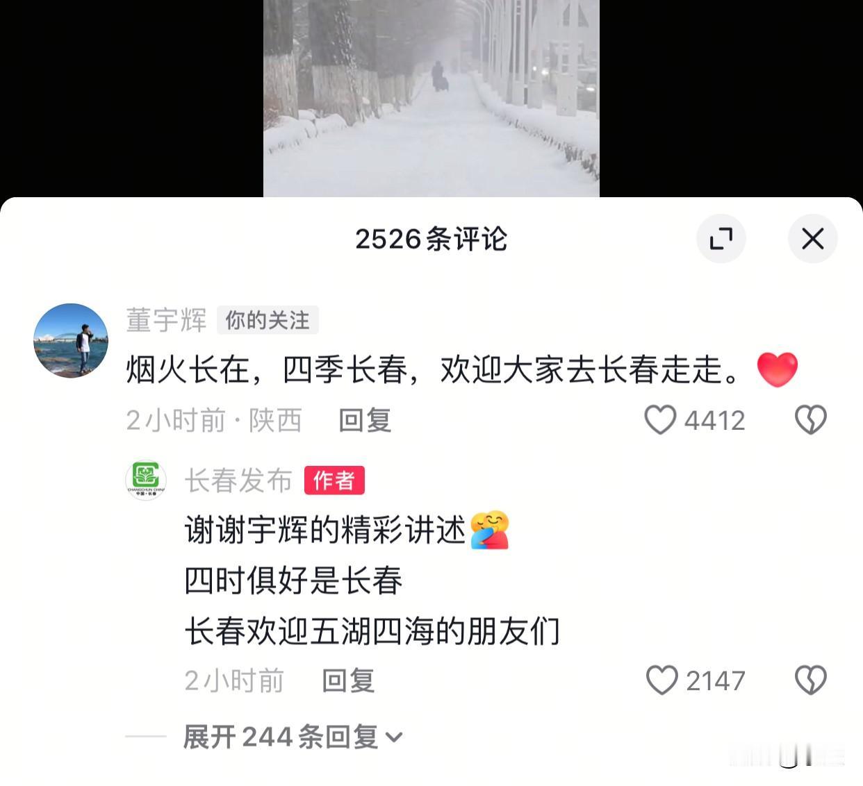 董宇辉把第一支城市宣传片给了长春 小作文写的如散文诗般优美 很多网友评论说,重新认识了长春,下一站必须去长春看看了[耶] 宇辉自己也留言“烟火常在,四季长春” 并以饱满的热情欢迎大家去长春 从第一个城市联名款包包 到第一支城市宣传片 是什么打动了董宇辉 让他如此真心诚意的为长春宣传? 相信唯有真心才是最佳答案了 黑龙江行之后董宇辉就被盛情邀请了长春 当时连发两条视频表达他对长春的喜爱 显然他被东北人民的热情和真诚感动 也被这片黑土地的厚重所震撼 才会有了后面一系列的合作[赞][比心] 既然有了模版 希望其他城市纷纷效仿起来 我们希望宇辉给更多城市做宣传片 让大家能时常看到如此优美的小作文 也能更全面的认识更多美好的城市[耶]