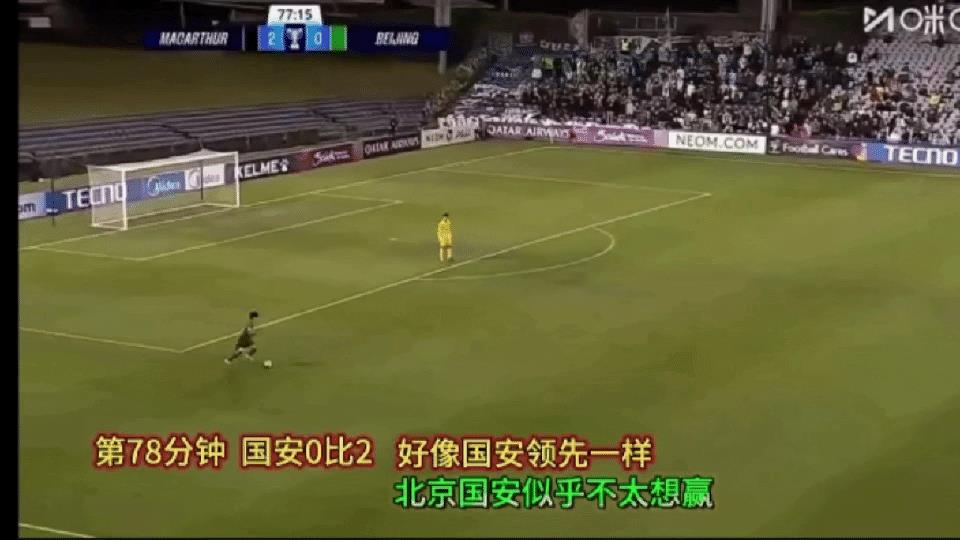 北京国安从这个画面看好像领先了对方两个球似的,实际上正相反。 再有10多分钟比赛就要结束了,还落后人家两个球。 而后卫这几个人半分钟内都在自己的半场倒脚,竟然临危不乱、慢条斯理。 既然塞蒂恩的“后发制人”部署己经失效,为啥还不大举压上、以攻为上?