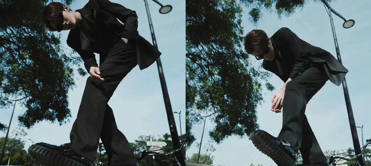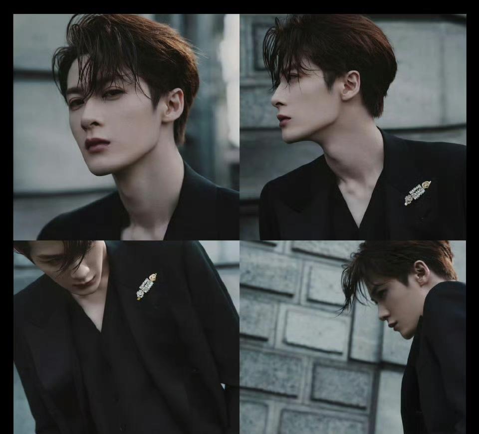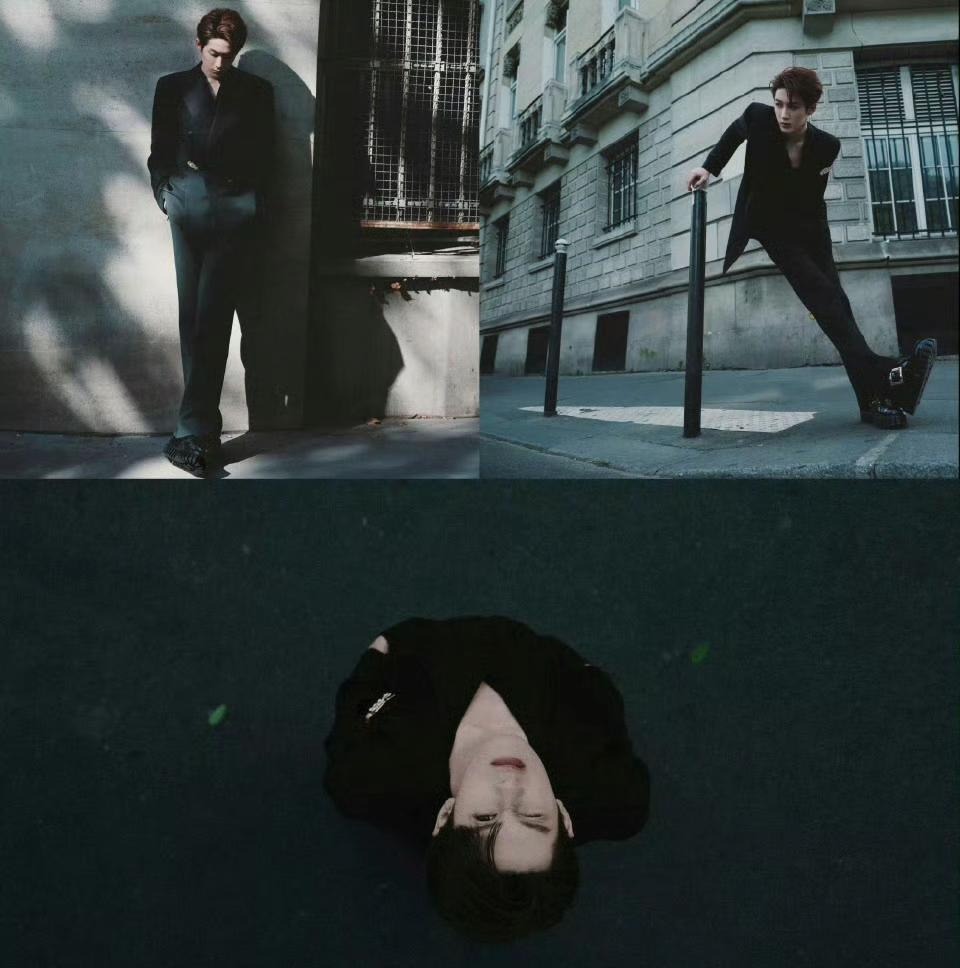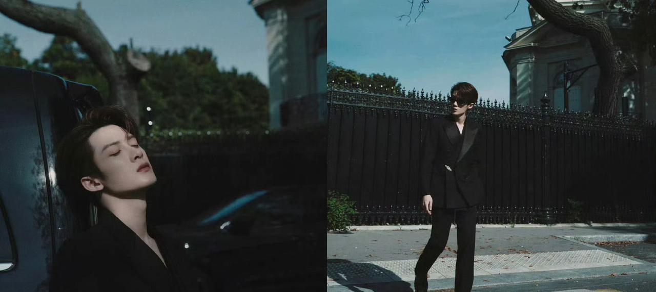 檀健次亮相#巴黎时装周#RogerVivier新季系列造型大片,身穿黑色西装