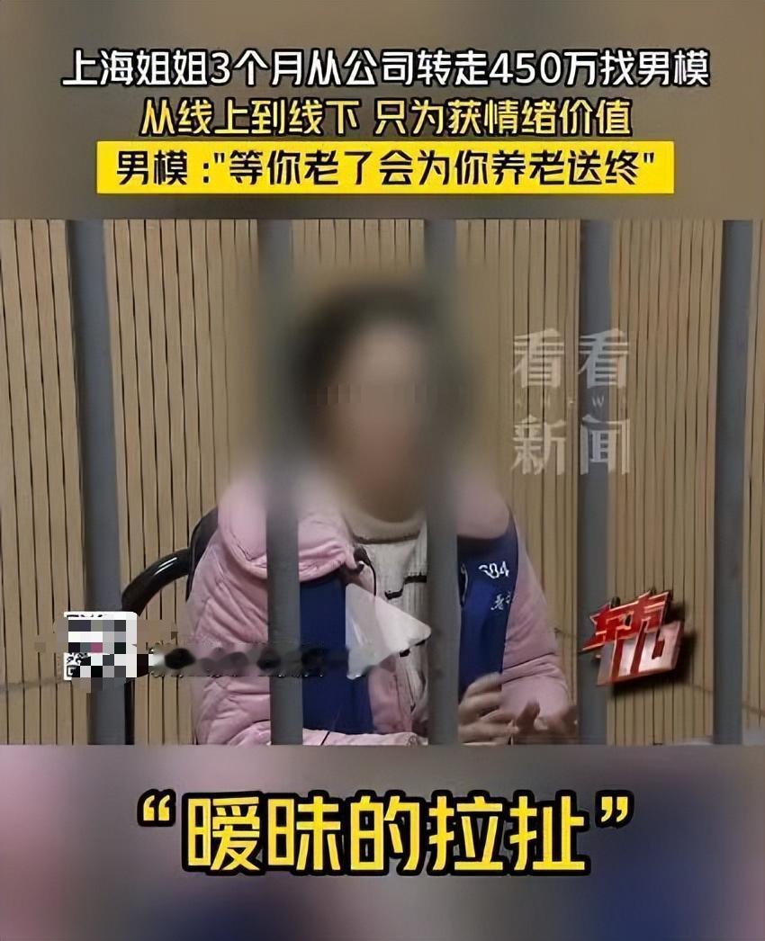 “胆大包天!”2025年2月,上海,一女子离婚后为寻求情绪安慰流连酒吧,竟然在3个月的时间里挪用公司450万公款,只为给酒吧男服务员高消费,用自由为代价换了3个月的“快乐”,网友:这女人可悲可怜又可恨! 俗话说香饵之下,必有死鱼,人如果被眼前一时的快乐诱惑,由此生出“贪念”,将手伸向不属于自己的东西,那么下场会很惨。 一女子是名公司财务,月工资大概在6000元左右,虽然说这个数目不算多,但她老公有时候会补贴一些,每个月还能攒下点自己的小金库,日子也算过得有滋有味。 但这种幸福生活在女子母亲离世后戛然而止,为了给母亲治病,女子花了家里不少钱,公公婆婆对此十分不满,从不会给她好脸色看,而她老公在外忙生意,没有人宽慰她,这让女子觉得十分痛苦。 偶然间女子刷到了一个帅哥直播间,里面的年轻男孩一声声“姐姐”给女子喊得晕头转向,她沉迷其中不可自拔,疯狂刷礼物,欠下了不少债务,女子的老公受不了便与她离了婚。 离婚后的女子更加疯狂,开始来到酒吧寻欢作乐,酒吧的男服务员嘴甜长得又帅,给她提供了许多情绪价值,由于自己钱包空空,她将手伸向了公司,3个月的时间里挪用公款450万元,这些钱她几乎全花在了这些男服务员身上。 公司发现账户亏空后,急忙报了警,经过一番调查后女子被抓捕归案,带上了银手镯,她在监狱里后悔自己的所作所为,觉得自己辜负了儿子的期待,但此时无论说什么都显得格外无力,女子还是为自己3个月的快乐付出了自由的代价! 信息来源:《女子离婚后找男模,3个月花光450万公款!已被刑拘》江苏警方