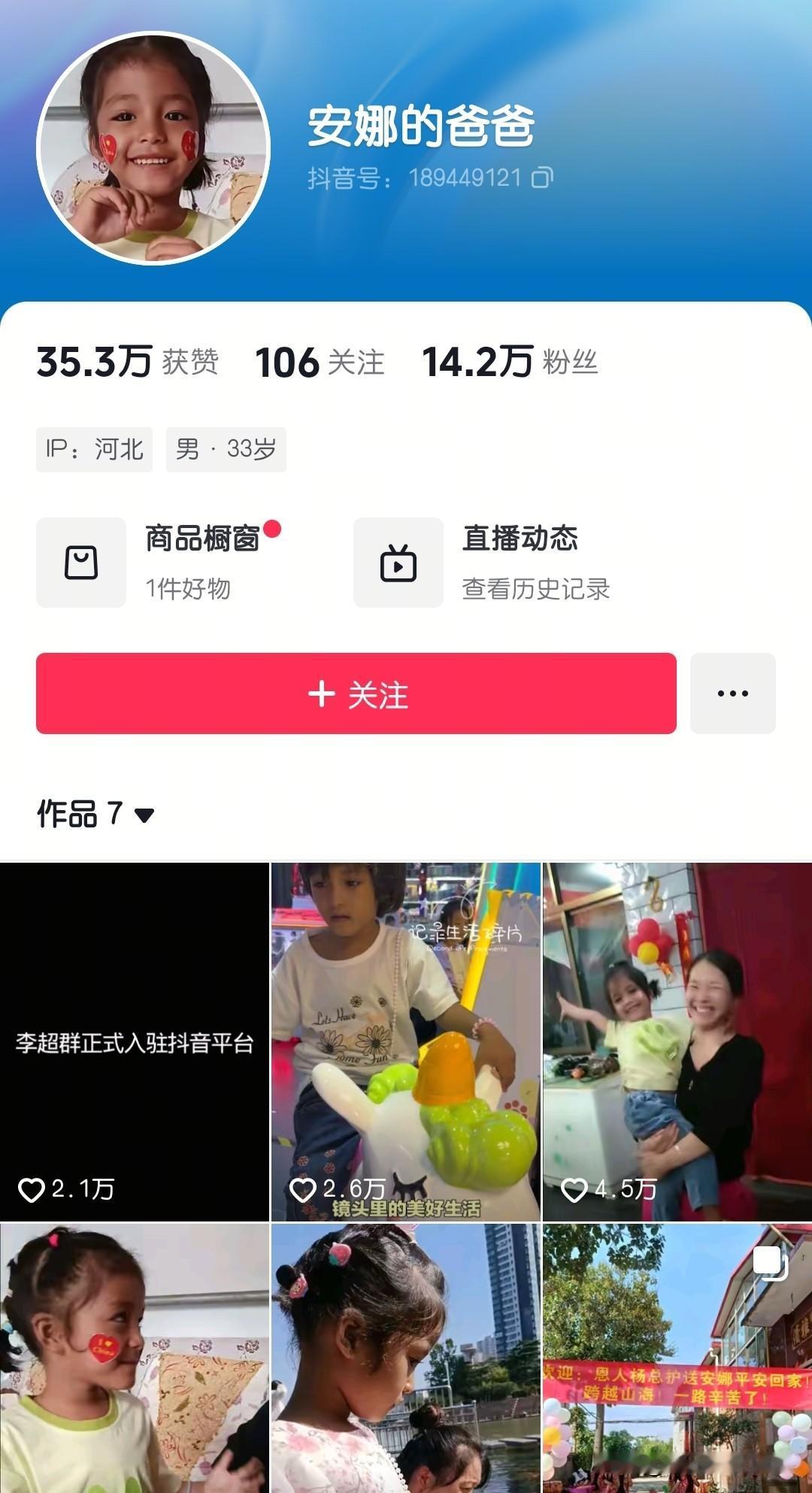 安娜爸爸今天开启第一场直播带货。他的账号在5天之内涨粉到14万多。相对于其他回来的宝宝,安娜爸爸涨粉速度最快。 前两天直播没有带货,今天直播开始带货。看着比前两天直播很顺利了很多,相信以后也是慢慢越来越好的。 在安娜爸爸更新的视频里可以看到小安娜在爸爸家里面,也慢慢有了笑容。姑姑带着安娜去玩游戏,和小伙伴玩的很开心。适应了家里的生活,安娜也是慢慢露出笑脸。