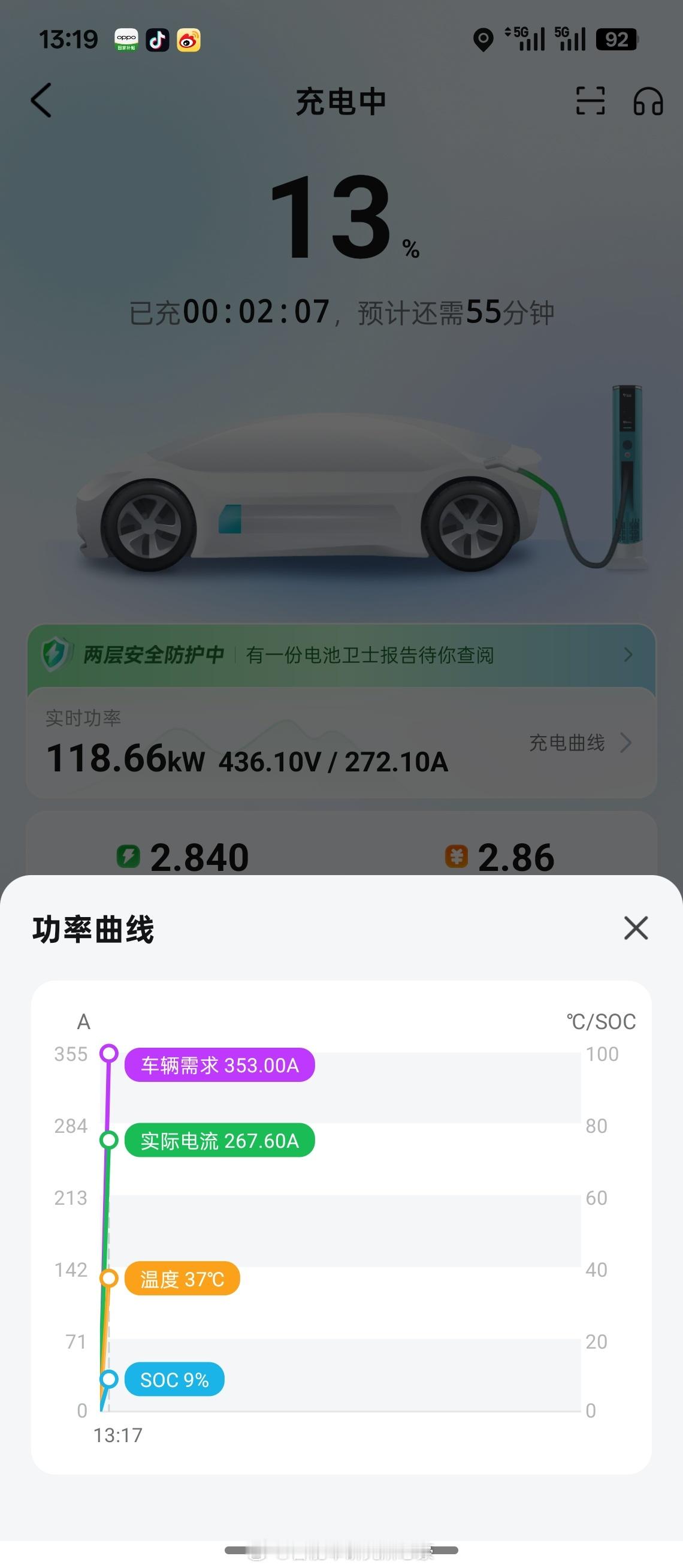节假日充电体验真的是骤减,先是现场车多排队、等到了功率也被分流,性能受限。