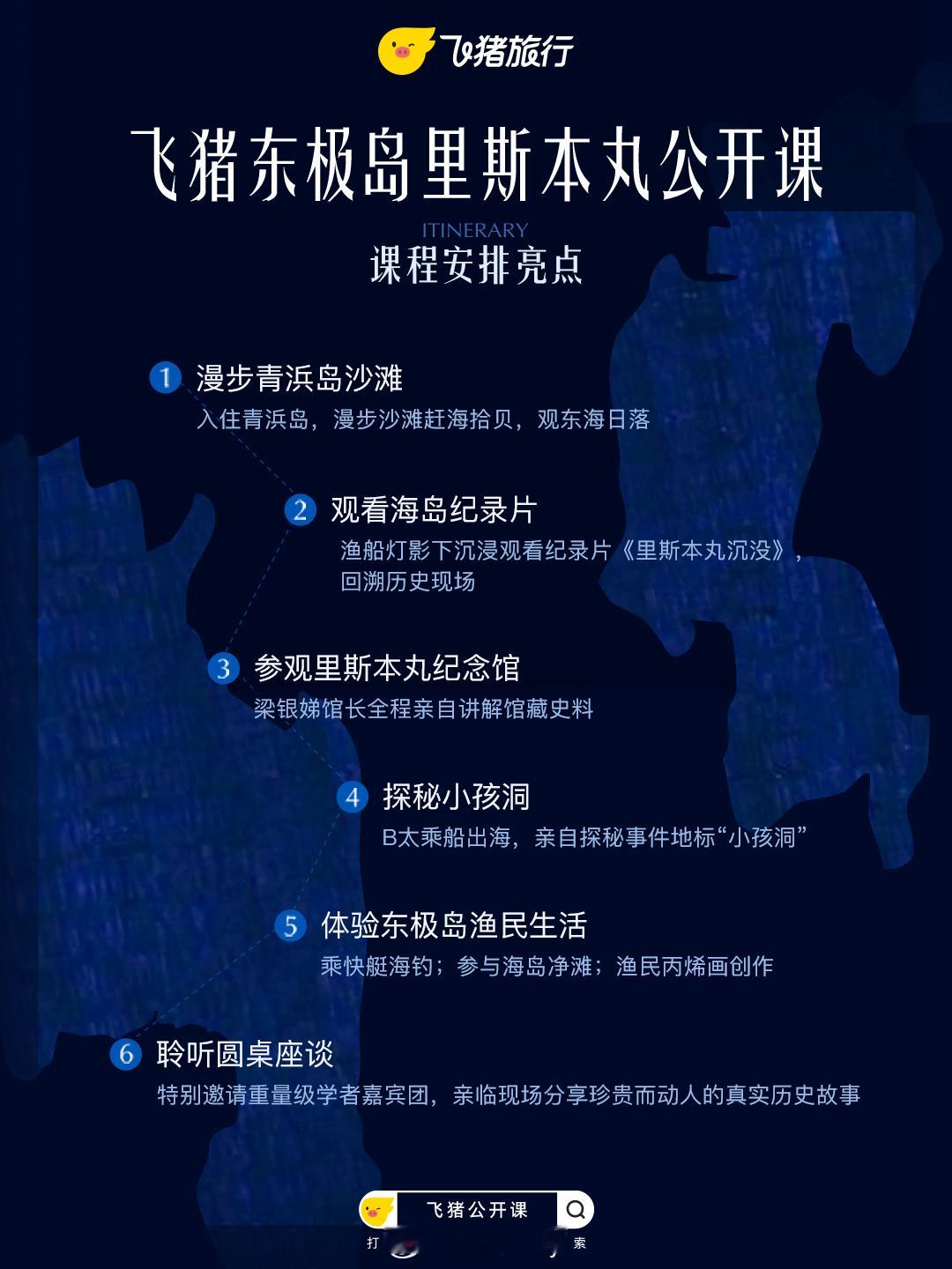 看极致的自然风光感受地理独特性,更可以了解历史人文和当地渔民的个性养成,飞猪公开课东极岛让我们全面看懂了东极岛,有了计划再出发,玩得更全面,也更沉浸。