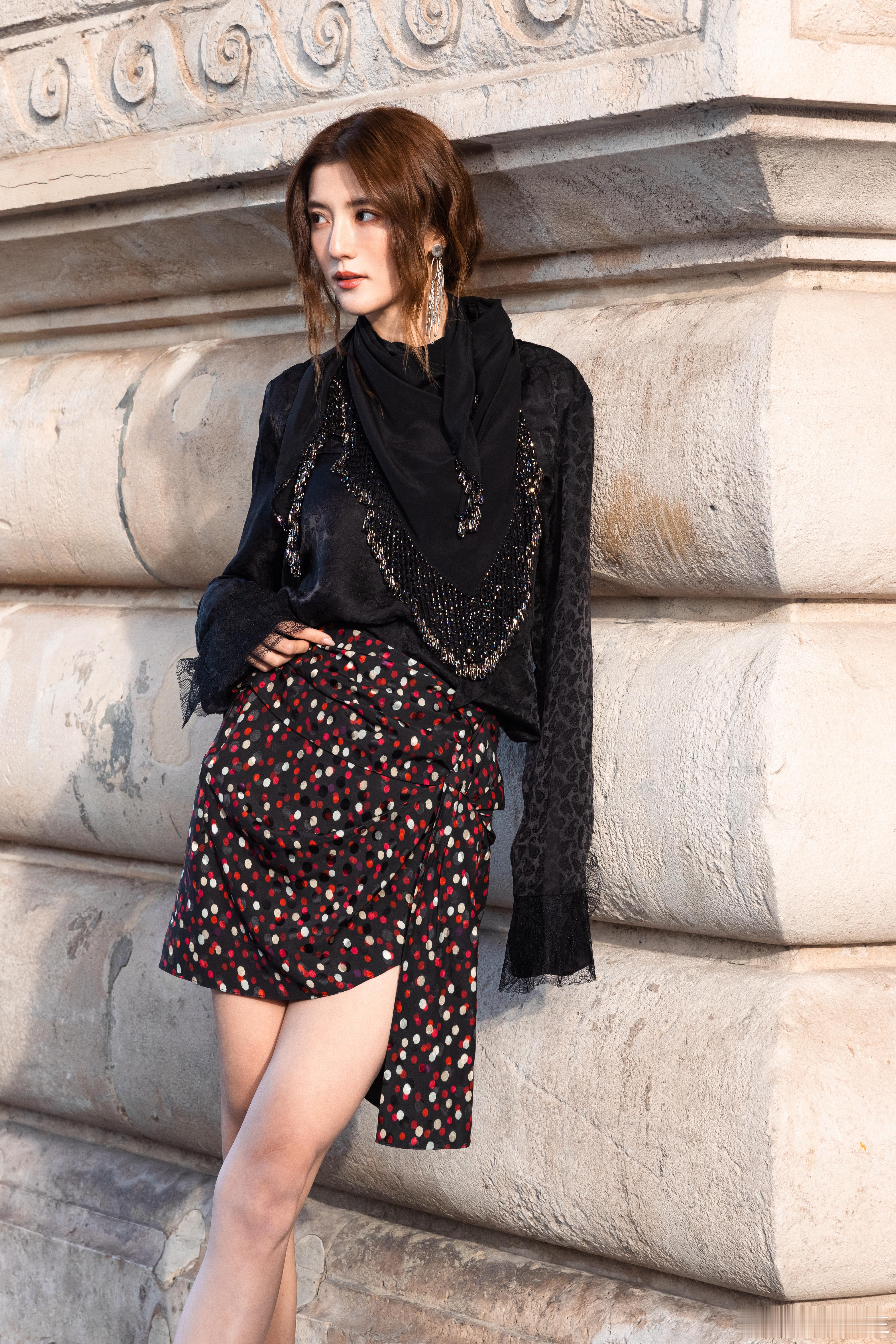 谁知道蔡文静和吴千语在说什么 吴千语穿什么都好看!衣服上身养眼又松弛,波点的多元搭配也能轻松 hold 住,猜姐姐们在聊时尚,好想旁听!