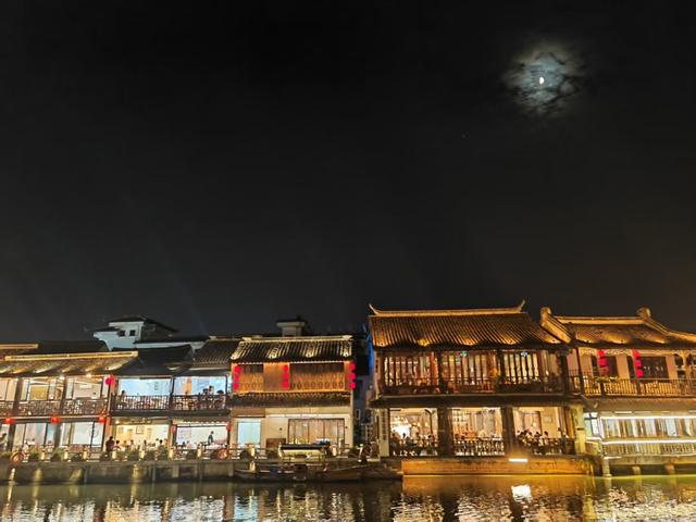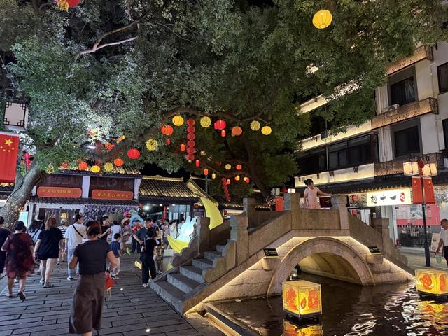“太出片了!”来自上海市区的摄影爱好者李女士举着相机不停按下快门。她的镜头里,古桥、游船、灯光与夜空相映成趣。“特意选了有演出的日子来,古建筑、灯光、汉服融合,太有江南韵味了!”