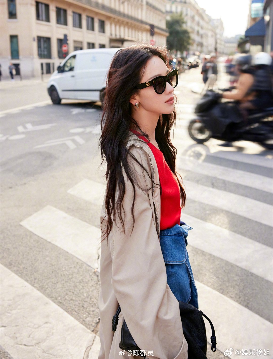 陈都灵巴黎街拍 陈都灵g社生图好明媚在巴黎的鎏金光影下,陈都灵交出了她的Loew