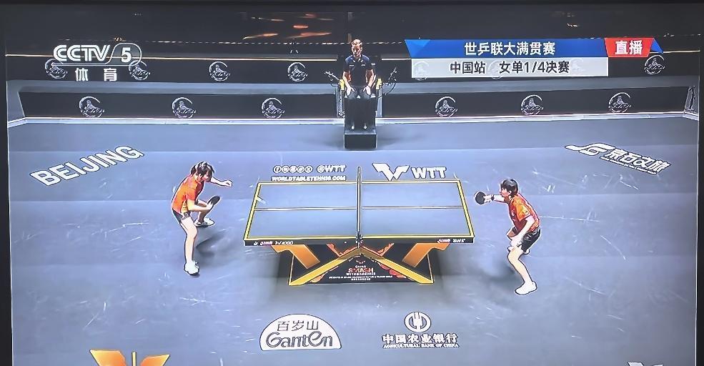 陈幸同与朱雨玲的比赛开始了,前两局1:1平,第3局1:2,陈幸同落后一分,朱雨玲