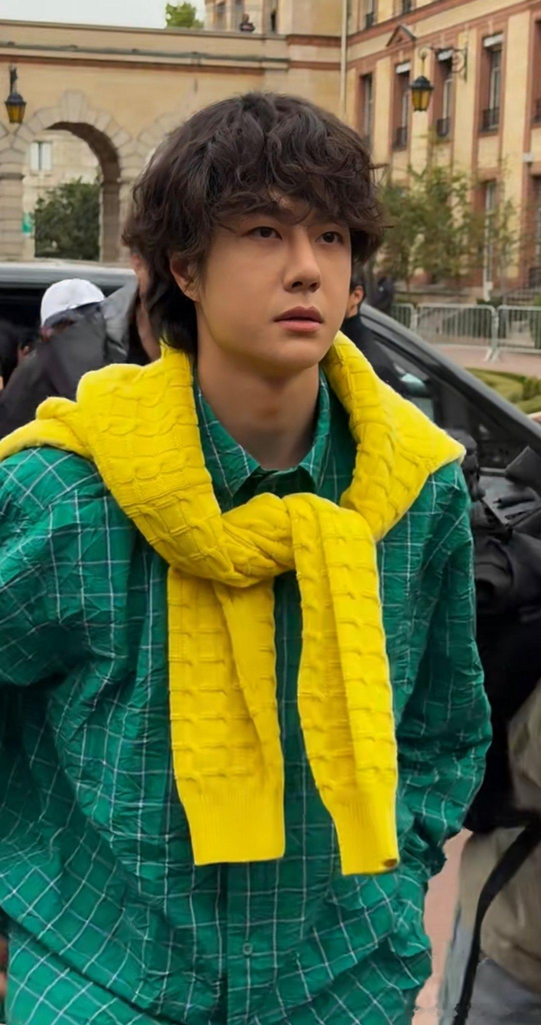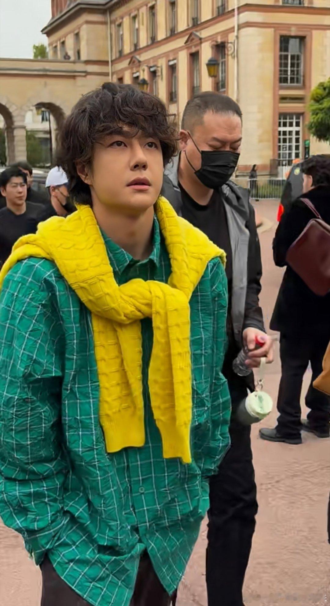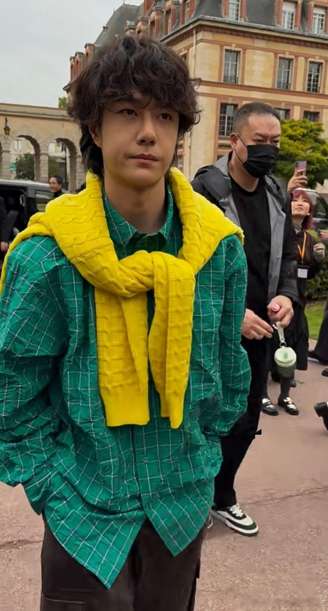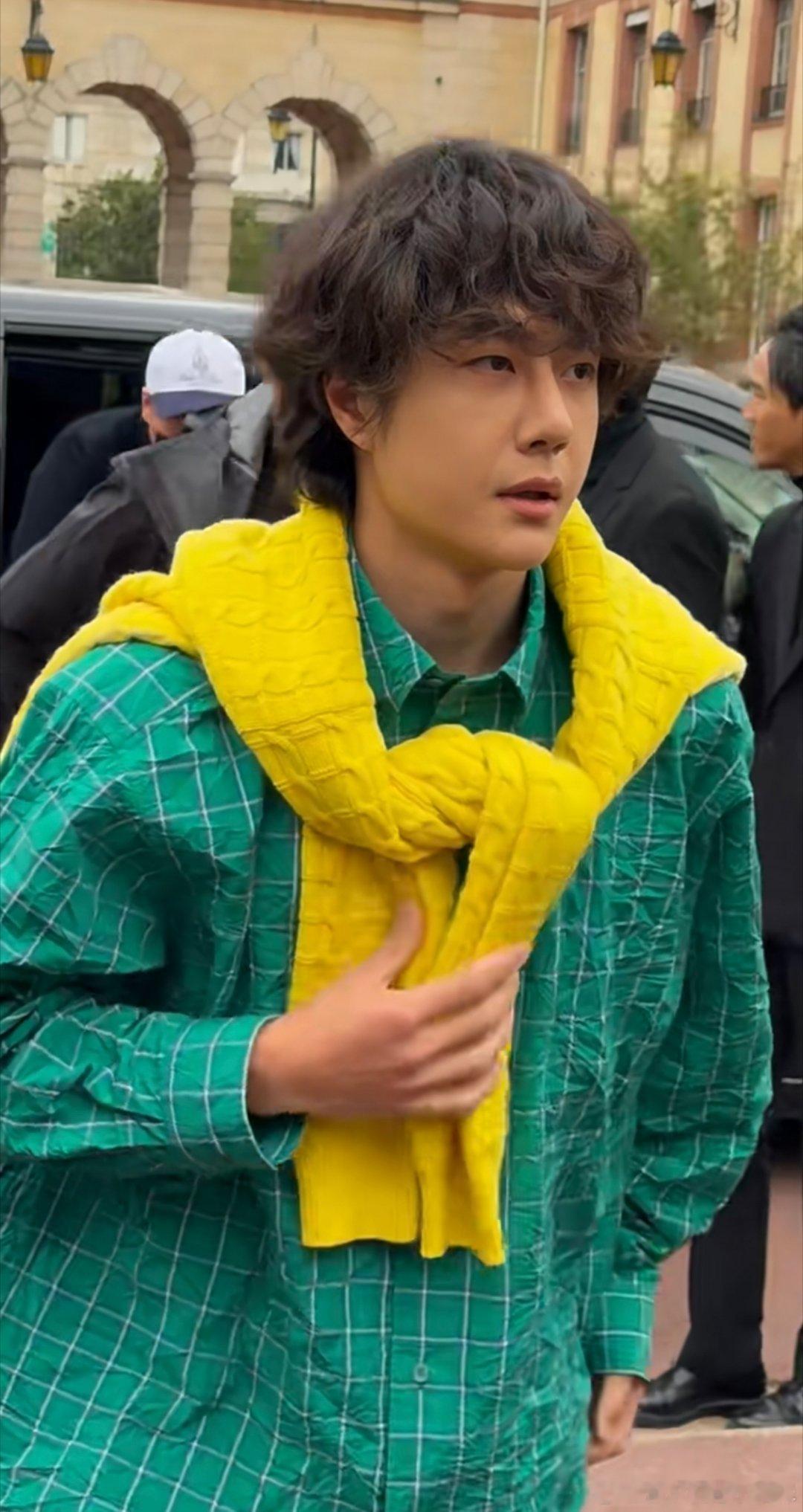 王一博罗意威巴黎大秀造型王一博来到loewe现场,微黄卷发配柠檬绿青春洋溢,就是鼻影好像打的有点狠。这个颜值你们打几分?