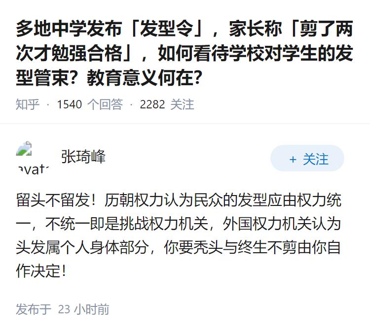 多地中学发布「发型令」,家长称「剪了两次才勉强合格」,如何看待学校对学生的发型管束?教育意义何在?