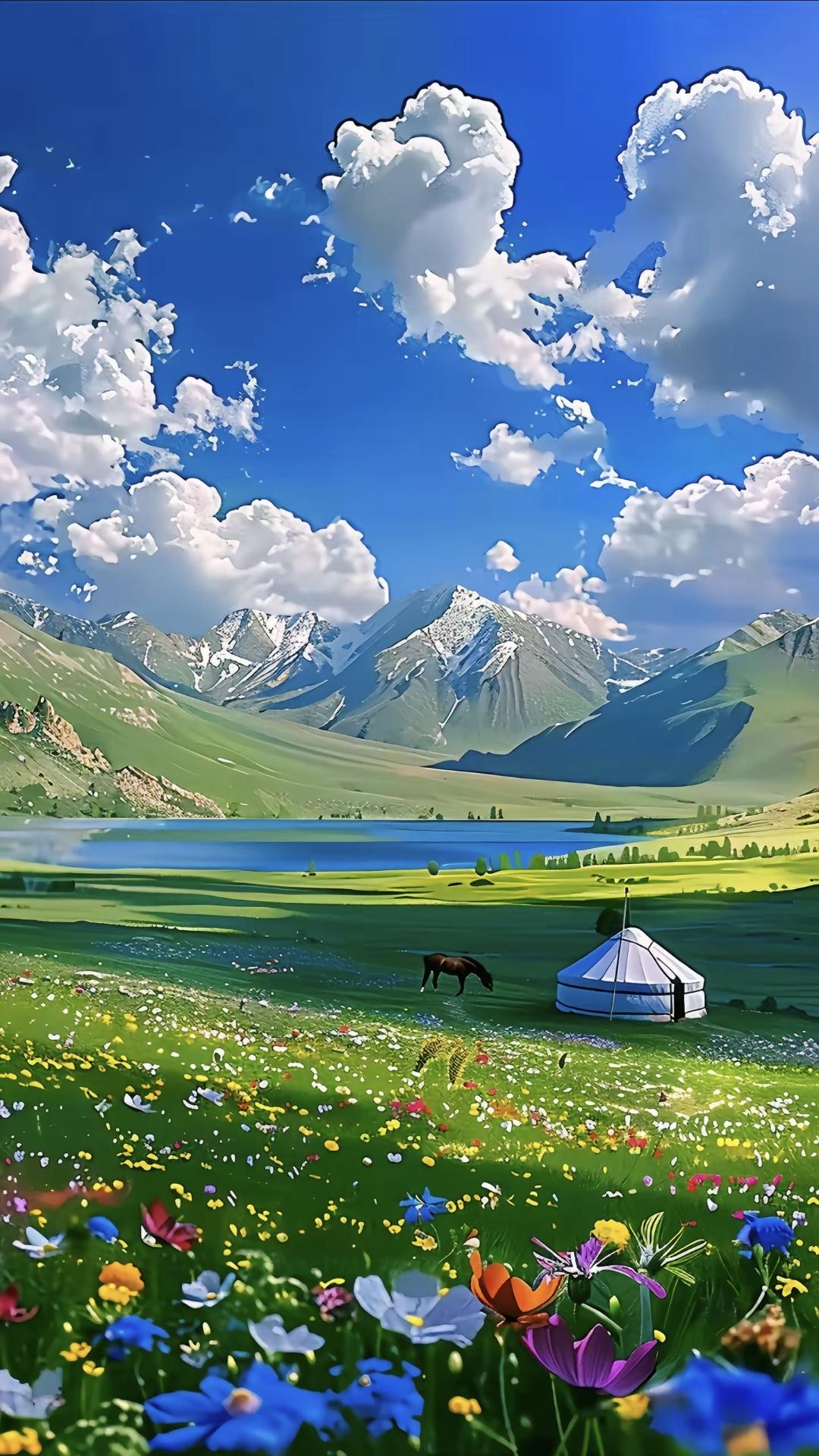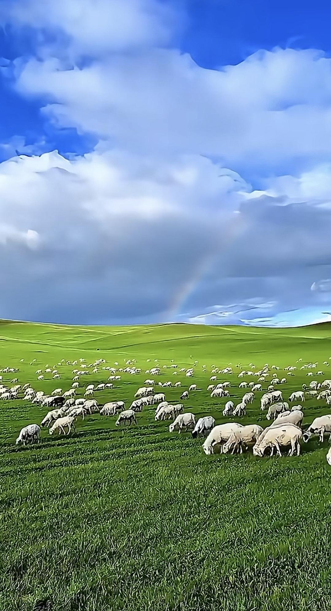 莺飞草长的草原上空是蓝色的云,云飘来飘去,很悠闲,莺飞草长的草原和悠闲的云搭配在一起是无比的合适,人站在草原上看到这一种景象会心旷神怡,美得不能再美风景 草原 草原养眼美景
